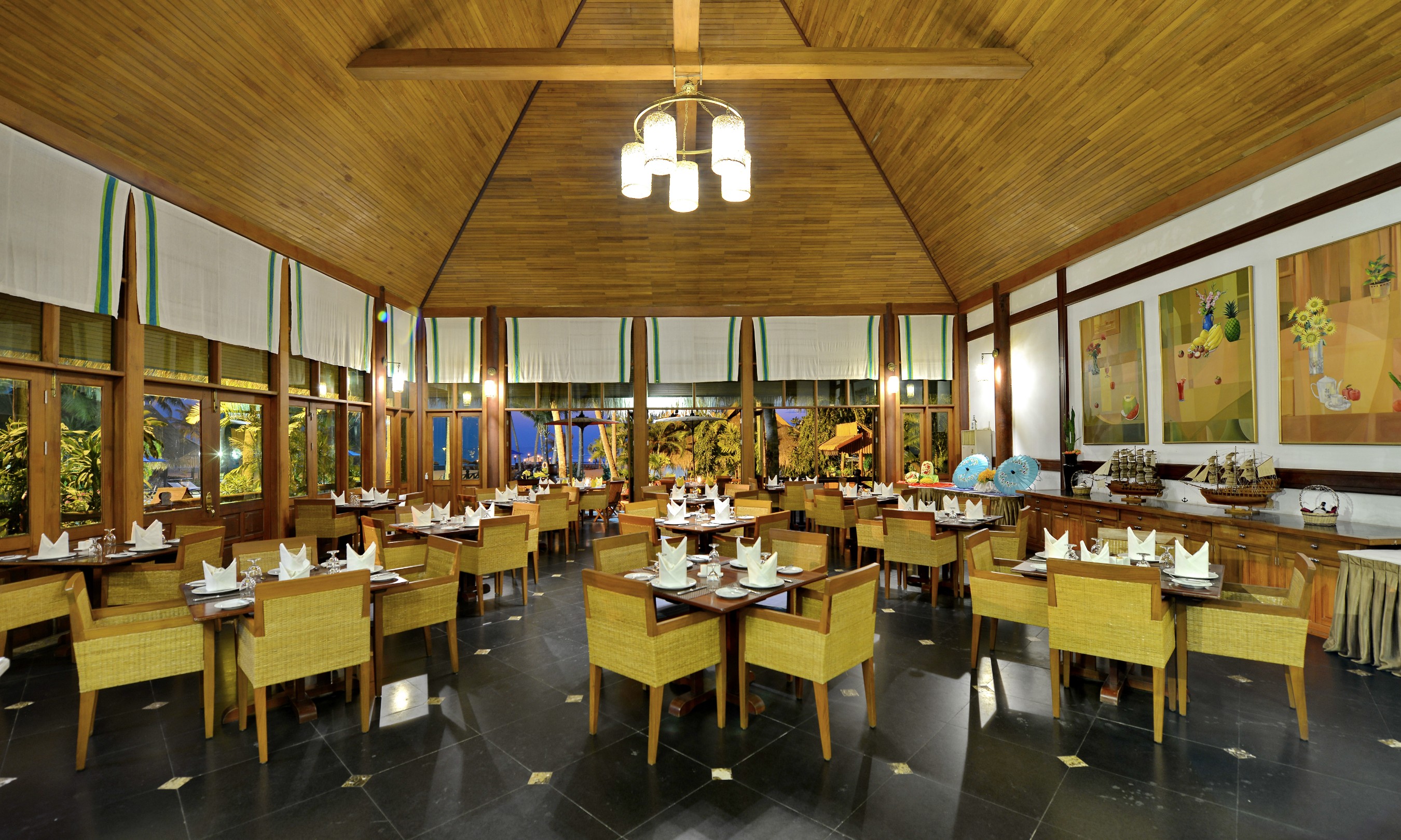 El complejo ana la hospitalidad oriental y el confort occidental. En la entrada hay elementos en forma de columnas, con un toque de belleza natural y la tranquilidad de un espacio amplio, as como la elegancia de las obras artesanales autctonas. El complejo dispone de 64 habitaciones, 40 de ellas lujosos bungalows con vistas al mar y 24 habitaciones con romnticas vistas al jardn. Esta ubicado en una zona tranquila y todas las lujosas habitaciones tienen instalaciones propias de un hotel de lujo. Est climatizado y le ofrece un hall de entrada, con una recepcin abierta las 24 horas, servicio de cambio de divisa, de caja fuerte y terraza. El edificio anexo tiene 2 plantas. Adems, cuenta con una cafetera, un bar, una peluquera y una tienda de recuerdos. En el edificio tambin hay un restaurante y un comedor. Tiene a su disposicin una canguro encantadora, servicio de habitaciones, de lavandera (con cargo extra), de atencin mdica y lavandera. Adems, hay un stano para guardar bicicletas, servicio de alquiler de las mismas y un aparcamiento.