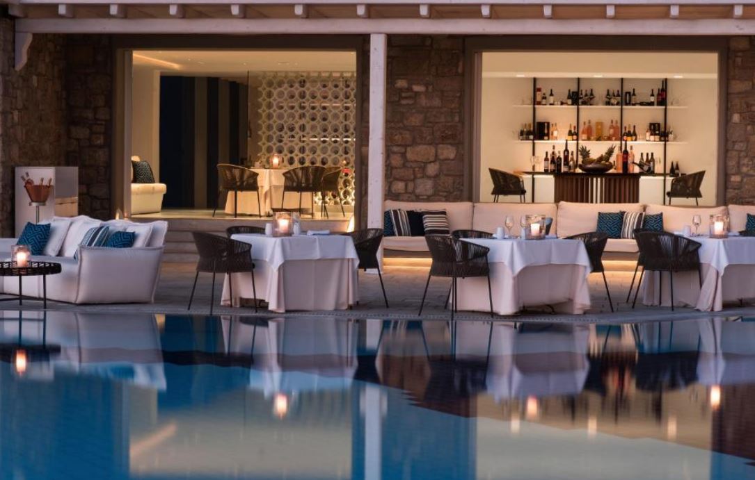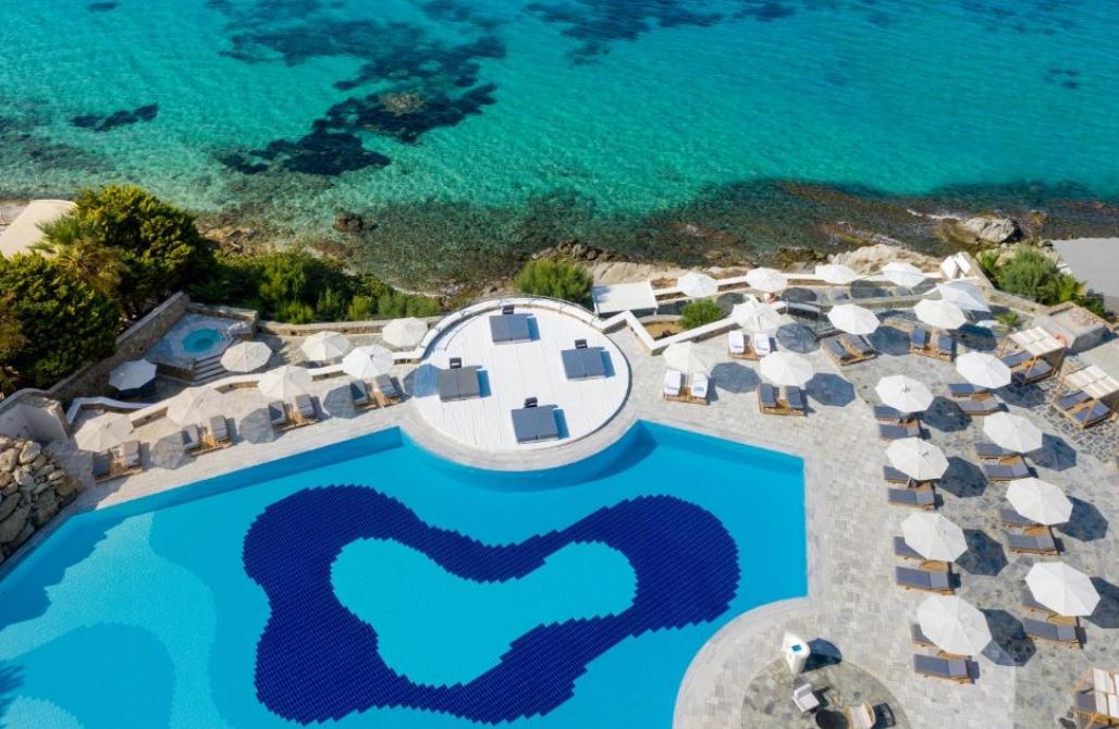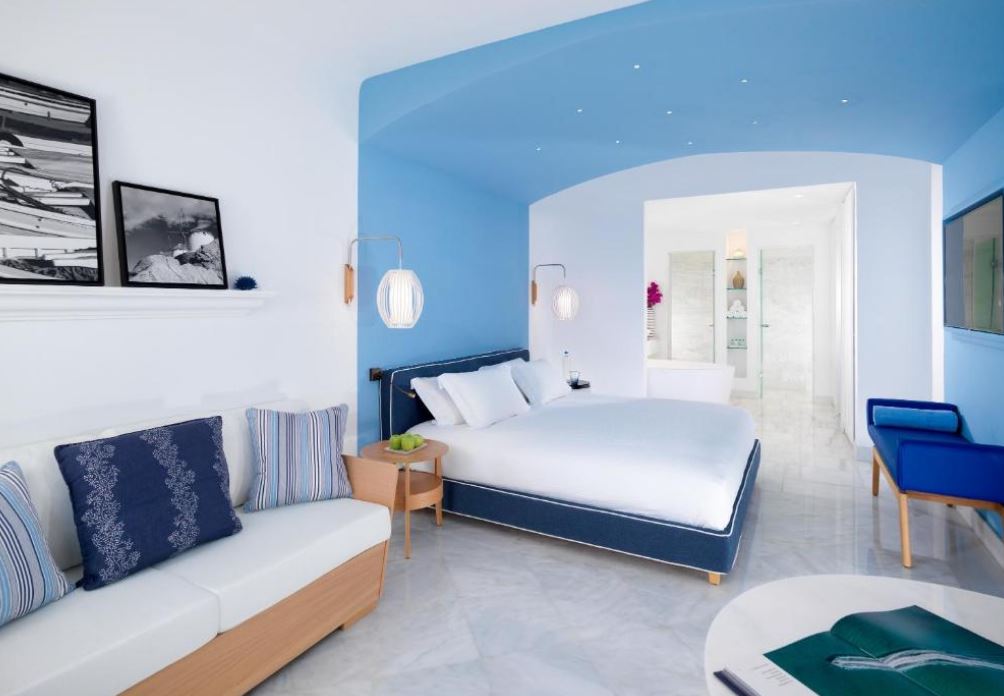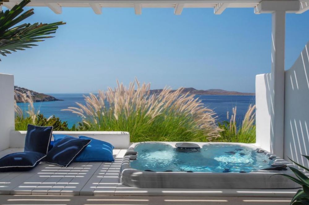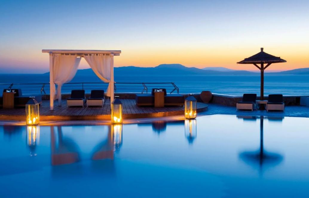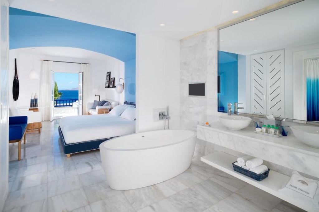 El Mykonos Grand Hotel & Resort está situado justo en la playa de Agios Ioannis.Ofrece alojamiento boutique de 5 estrellas entre senderos de adoquines y con vistas a la isla de Delos. Alberga un centro de salud y dispone de restaurantes excelentes y elegantes. Las habitaciones y suites del Mykonos Grand combinan la arquitectura cúbica de estilo cicládico con la apacible decoración de sus interiores. Están equipadas con TV LCD vía satélite, reproductor de DVD y soporte para iPod. Todos los alojamientos disponen de balcón o patio con vistas al mar, al jardín o a la piscina. Los huéspedes pueden disfrutar de mariscos frescos, especialidades a la parrilla y otros sabores mediterráneos en el comedor al aire libre o junto a la piscina, con vistas panorámicas al mar. El White Bar es ideal para tomar una copa de champán en su terraza de estilo minimalista. El centro de spa Althea ofrece una amplia variedad de tratamientos naturales basados ¿¿en técnicas tradicionales griegas. El establecimiento dispone de una apacible piscina con zonas privadas, además de un gimnasio de última generación y una pista de tenis.