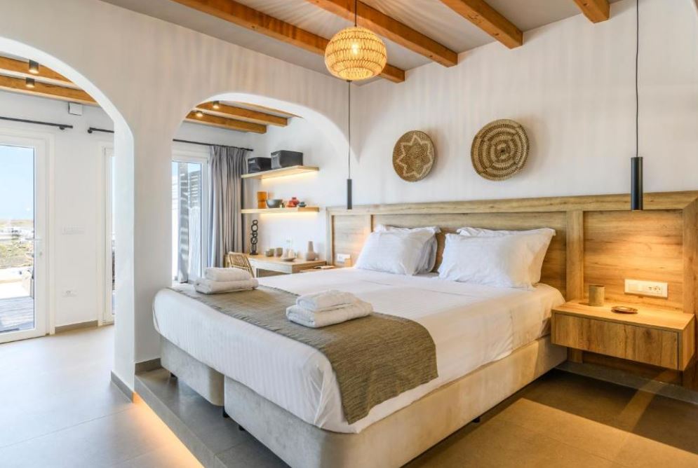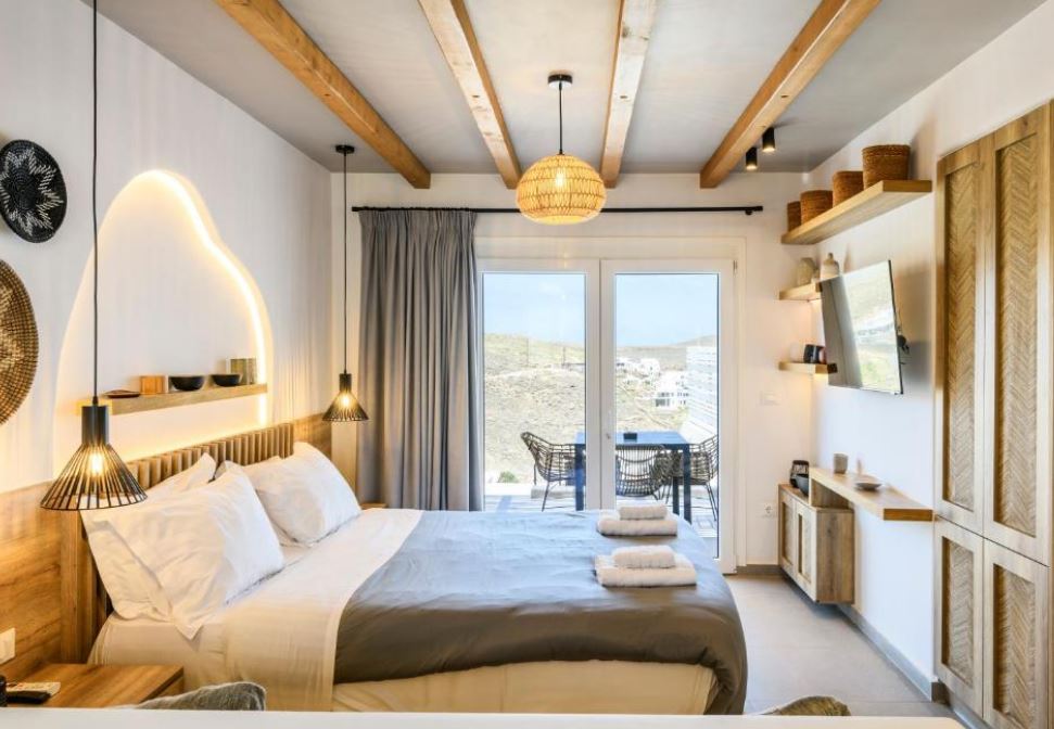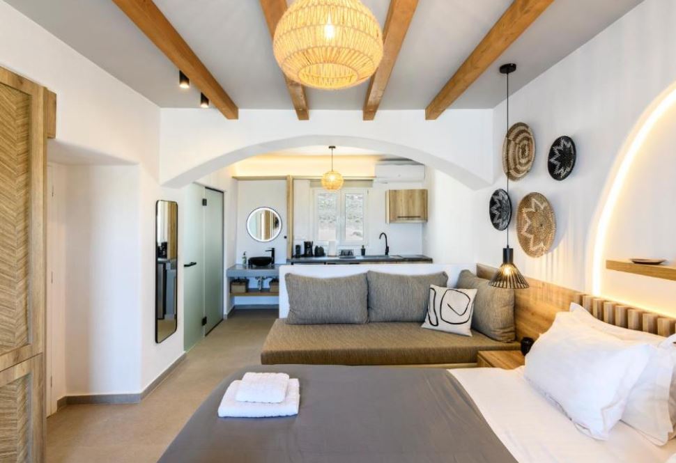 El Mykonos Residence Villas & Suites Merchia Beach, con una zona de playa privada y vistas al mar, es un aparthotel recientemente renovado situado en Merchia Beach, a 100 metros de Merchia Beach. Este establecimiento frente al mar ofrece acceso a un balcón, aparcamiento privado gratuito y conexión WiFi gratuita. El apartotel cuenta con una piscina infinita con bar junto a la piscina, así como una bañera de hidromasaje y recepción abierta las 24 horas. El aparthotel dispone de alojamientos con aire acondicionado, escritorio, cafetera, microondas, tostadora, caja fuerte, TV de pantalla plana, terraza y baño privado con ducha. Todos los alojamientos están equipados con hervidor de agua y algunas habitaciones tienen cocina totalmente equipada con horno. Las comodidades adicionales de la habitación incluyen vino o champán, frutas y chocolates o galletas. El apartotel está especializado en desayuno buffet y a la carta y también está disponible el desayuno en la habitación. Los huéspedes pueden comer en el restaurante familiar del hotel, que está abierto para la cena, el almuerzo, el brunch y los cócteles.