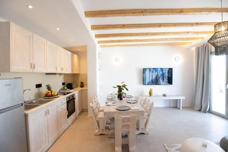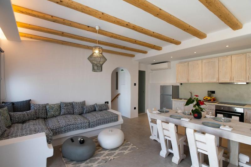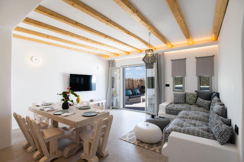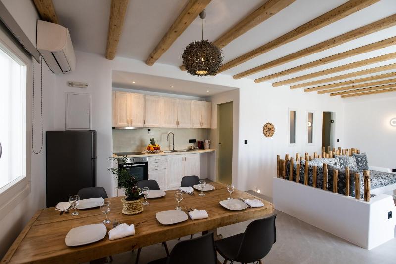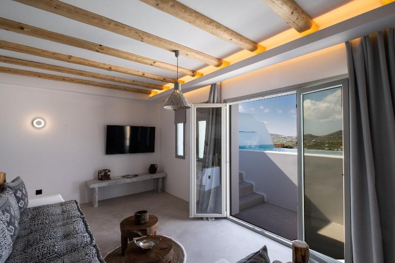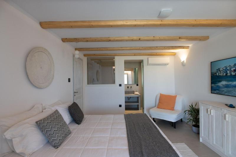 Ubicado en Mykonos, Mykonos Village se encuentra en las afueras, a 10 minutos en coche de la playa de Kalo Livadi y de la playa de Kalafatis. Este alojamiento de 4 estrellas se encuentra a 3, 1 km de la playa de Lia y a 5, 7 km de la playa de Fokos. Disfrute de masajes en el establecimiento o admire las vistas desde la terraza y el jardín. Tendrás a tu disposición check-out exprés, consigna de equipaje y taquillas. Se ofrece servicio de transporte al aeropuerto (ida y vuelta) con recargo (previa solicitud), así como aparcamiento gratuito. Siéntete como en casa en una de las 5 habitaciones con aire acondicionado y Smart TV. Descansa en una cama con edredón de plumas y ropa de cama de primera calidad. Las habitaciones disponen de porches amueblados. La conexión a Internet wifi gratis te mantendrá conectado y la programación digital te permitirá entretenerte. El baño cuenta con ducha con cabezal de ducha tipo lluvia y artículos de tocador gratuitos.