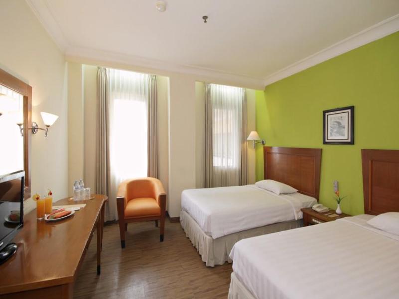 Ubicado en la famosa Cihampelas de Bandung, también conocida como la 'Calle de los Jeans', este hotel urbano ofrece un acceso inigualable a las animadas tiendas y a la vida de la ciudad. A tan solo 15 minutos en coche del aeropuerto nacional Husein Sastranegara y a 10 minutos de la estación de tren, también está convenientemente situado a solo 3 horas de Yakarta y a 2 horas de Tangkuban Perahu. El hotel cuenta con 74 habitaciones estándar, 11 habitaciones de lujo, 3 suites y 3 suites junior distribuidas en 5 plantas. Disfrutarás de un personal amable, una sala de conferencias, una farmacia, un bar y un restaurante. Perfecto tanto para viajeros de placer como de negocios, el hotel ofrece recepción 24 horas, ascensor y servicios de habitaciones y lavandería (de pago). Cada espaciosa habitación cuenta con baño privado, aire acondicionado individual, televisión, teléfono, minibar y una cama doble. También puedes disfrutar de la piscina (de pago). El desayuno se sirve a diario.