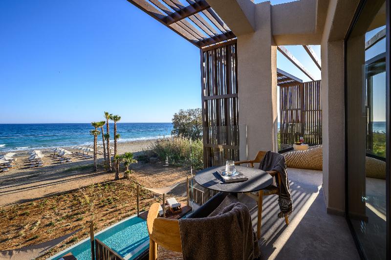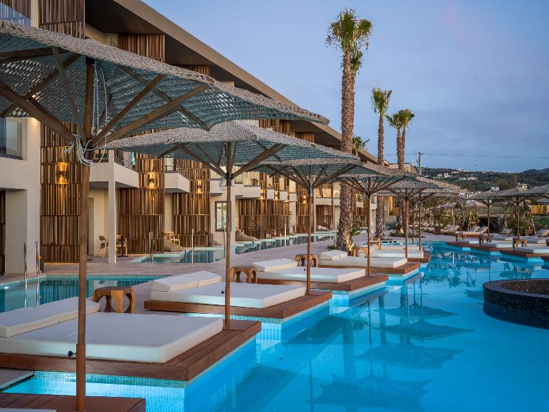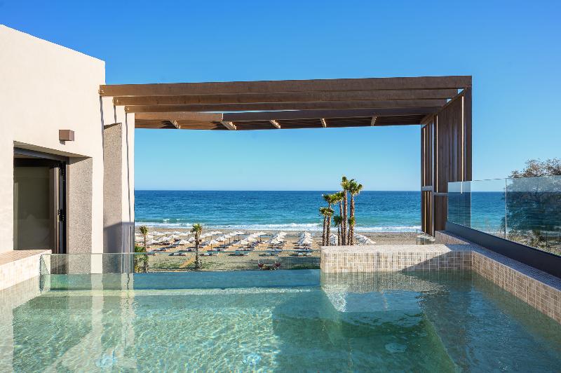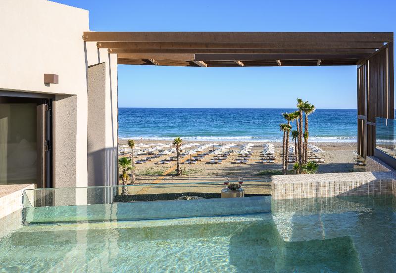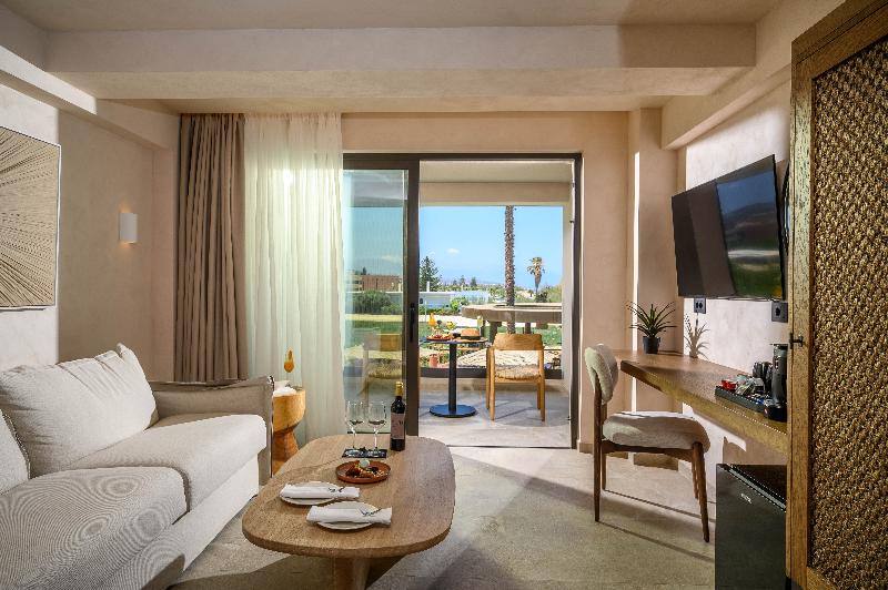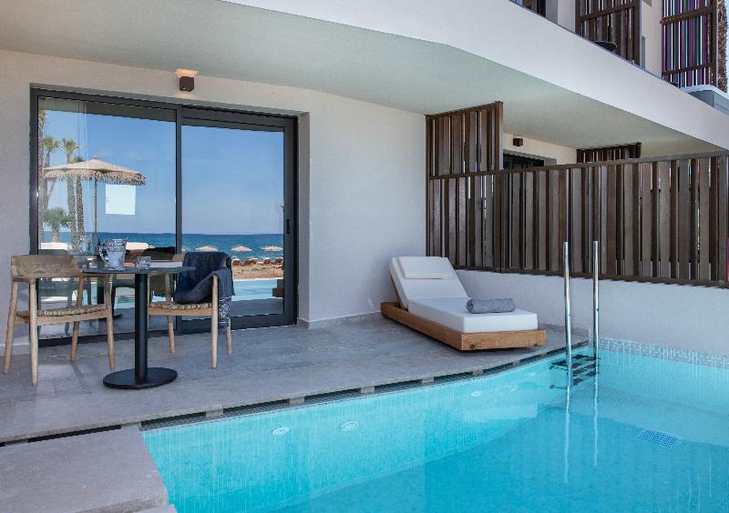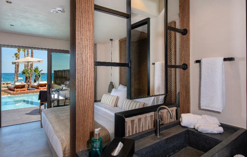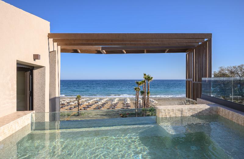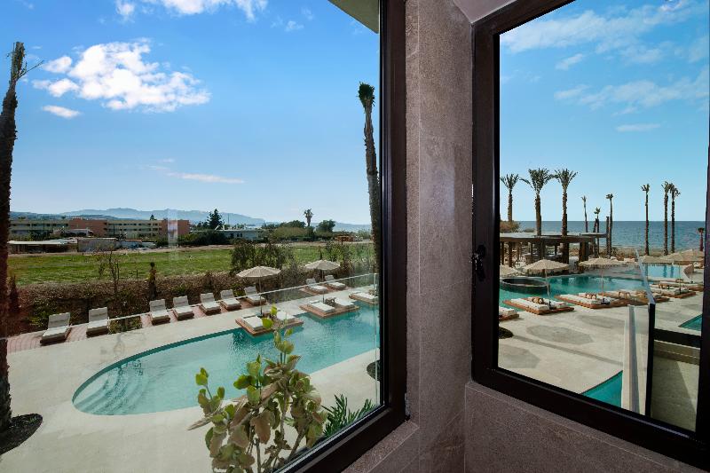 Ubicado en las prístinas costas de Adelianos Kampos de Rethymnon, un pintoresco paraíso en la costa noroeste de Creta, este resort solo para adultos frente al mar ofrece un refugio de pura serenidad. Con solo 66 habitaciones y suites, todas con fascinantes vistas al Egeo, Nalu Resort & Spa está diseñado para viajeros exigentes que anhelan intimidad, sofisticación y una profunda sensación de maravilla. Elige entre una variedad de alojamientos exquisitamente diseñados, que incluyen habitaciones Deluxe y elegantes Maisonettes de dos pisos. Cada habitación está equipada con comodidades modernas como wifi de alta velocidad gratuito, un minibar completamente surtido (bajo petición), una caja fuerte electrónica, servicio de té y café, y un televisor de pantalla plana. Para aquellos que buscan la máxima indulgencia, algunas habitaciones cuentan con piscinas privadas o compartidas, lo que te permite adentrarte en un mundo de lujo privado.