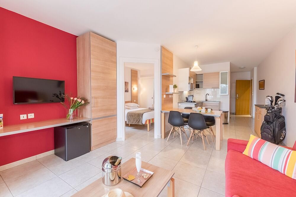 Si te alojas en Natureva Spa, en Agde (Cap d'Agde), podrás llegar fácilmente a Museo de l'Éphèbe y a Playa de Cap d'Agde. Esta residencia de 4 estrellas se encuentra muy cerca de Captain Jacko y Club de golf Cap d'Agde.Habitaciones Reserva una de las 51 habitaciones climatizadas, todas dotadas de cocina básica con frigorífico y microondas. Las habitaciones disponen de balcón amueblado. La conexión a Internet wifi gratis te permite comunicarte con los tuyos, y en tus ratos libres podrás entretenerte con el televisor de pantalla plana de 45 cm con canales por satélite. Las comodidades incluyen sofá cama, servicio de canguro en la habitación (de pago) y la posibilidad de solicitar tabla de planchar con plancha. Olvídate del estrés con los tratamientos corporales y tratamientos faciales disponibles. Si quieres divertirte aquí tienes para elegir, con instalaciones recreativas como discoteca, piscina cubierta y bañera de hidromasaje.Para comer Aprovecha el servicio de habitaciones con horario limitado de esta residencia.Servicios de negocios y otros Tendrás atención multilingüe, lavandería y caja fuerte en recepción a tu disposición. ¿Estás organizando un evento en Agde? En esta residencia tienes a tu disposición 100 metros cuadrados de espacio con una sala de reuniones. Hay un aparcamiento sin asistencia (de pago) disponible.