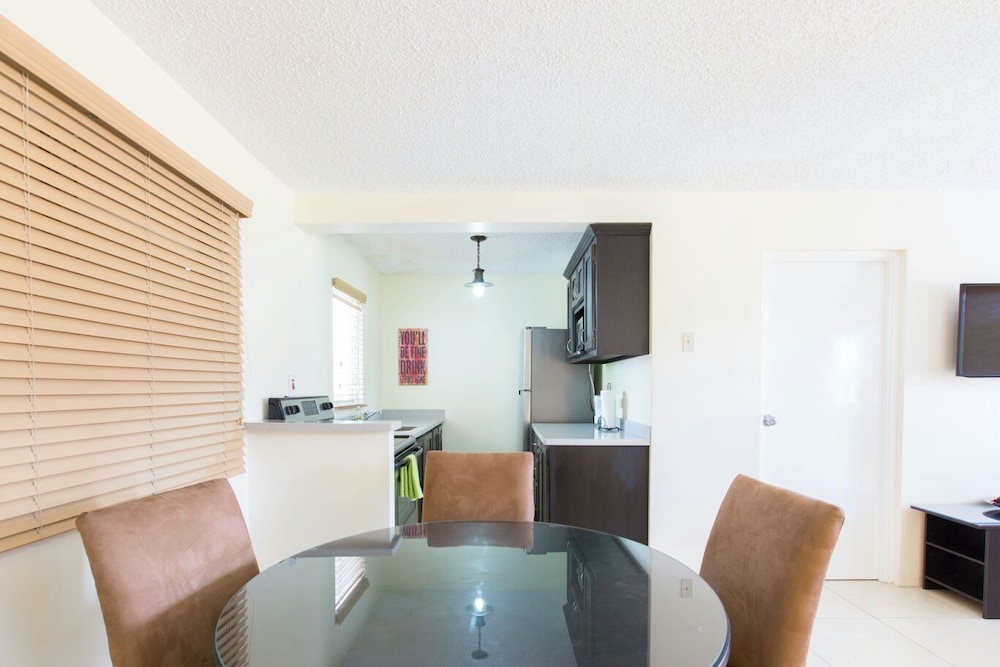 Si te alojas en New Kingston Guest Apartment IV, en Kingston (New Kingston), estarás a pocos minutos de Centre Stage Theatre y Pantry Playhouse. Este complejo de apartamentos se encuentra cerca de Sunshine Amusement Complex y de Parque de la Emancipación.Habitaciones Reserva una de las habitaciones climatizadas, dotadas de cocina con frigorífico y horno, y disfruta de una estancia inolvidable. Las habitaciones disponen de balcón o patio con mobiliario. La conexión a Internet wifi gratis te permite comunicarte con los tuyos, y en tus ratos libres tendrás un televisor de pantalla plana con canales por cable para entretenerte. Las comodidades incluyen una zona de estar separada y microondas, además de un servicio de limpieza disponible de forma limitada.Servicios Con jardín donde descansar y comodidades como conexión a Internet wifi gratis y servicio de canguro (de pago), ¡no te faltará de nada! El servicio de transporte (de pago) te llevará a varios puntos imprescindibles de la zona.Servicios de negocios y otros Pagando un pequeño suplemento podrás aprovechar prestaciones como servicio de transporte al aeropuerto (ida y vuelta) (disponible las 24 horas) y aparcamiento sin asistencia gratuito.