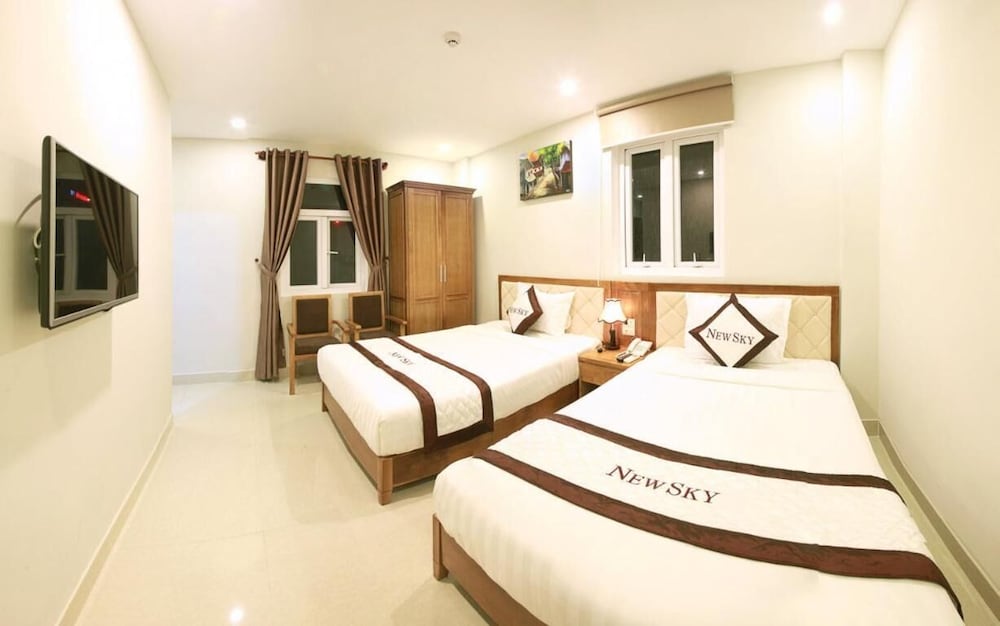 Si eliges New Sky Hotel en Da Nang, estarás a pocos minutos de Parque del Mar del Este y en las inmediaciones de Museo de Escultura Cham. Este hotel se encuentra cerca de Centro comercial Vincom y de Estatua del dragón-carpa. Te sentirás como en tu propia casa en cualquiera de las 25 habitaciones con aire acondicionado, minibar y televisor LCD. La conexión a Internet wifi gratis te mantendrá en contacto con los tuyos; también podrás ver tu programa favorito en el televisor con canales por cable. El baño privado con ducha está provisto de artículos de higiene personal gratuitos y secador de pelo. Entre las comodidades, se incluyen escritorio y cafetera y tetera, además de un servicio de limpieza disponible todos los días. Aprovecha los prácticos servicios que se te ofrecen, como conexión a Internet wifi gratis, televisor en zonas comunes o asistencia turística y para la compra de entradas. Tendrás servicio de tintorería, servicio de recepción 24 horas y depósito de equipaje a tu disposición. Pagando un pequeño suplemento podrás aprovechar prestaciones como servicio de transporte al aeropuerto (ida y vuelta) con horario limitado y aparcamiento limitado.