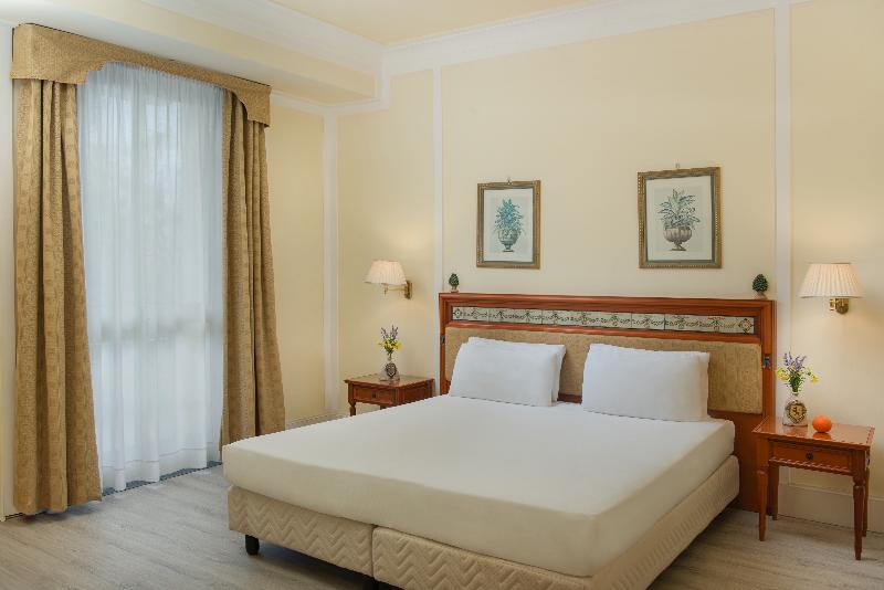 El hotel NH Caltagirone Villa San Mauro está situado a las afueras de Caltagirone, en Sicilia, y ofrece vistas panorámicas de los campos de los alrededores. El centro histórico de la ciudad, con su ornamentada arquitectura barroca y su famosa cerámica artesanal, se encuentra a tan solo cinco minutos en coche. Las habitaciones del NH Caltagirone Villa San Mauro están decoradas con un estilo tradicional y algunas disponen de balcones privados con preciosas vistas a la ciudad. Todas ellas cuentan con aire acondicionado, cafetera, albornoces y wifi gratuito para tu comodidad. El hotel sirve un delicioso desayuno cada mañana que combina la comida continental tradicional con los platos favoritos de la cocina siciliana, además de café, té y zumo recién hechos. Para ampliar tu experiencia gastronómica italiana, puedes comer en el restaurante Il Borgo dei Calatini, que sirve platos locales y regionales. Nuestro elegante bar es el lugar perfecto para relajarse con una copa de vino local o tu cóctel favorito. En los calurosos días de verano, puedes refrescarte en nuestra piscina al aire libre. Allí encontrarás otro bar para disfrutar de bebidas junto a la piscina mientras tomas el sol. El hotel también dispone de una sala de reuniones con capacidad para 180 personas, ideal para eventos y celebraciones privadas.