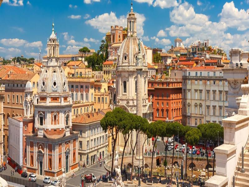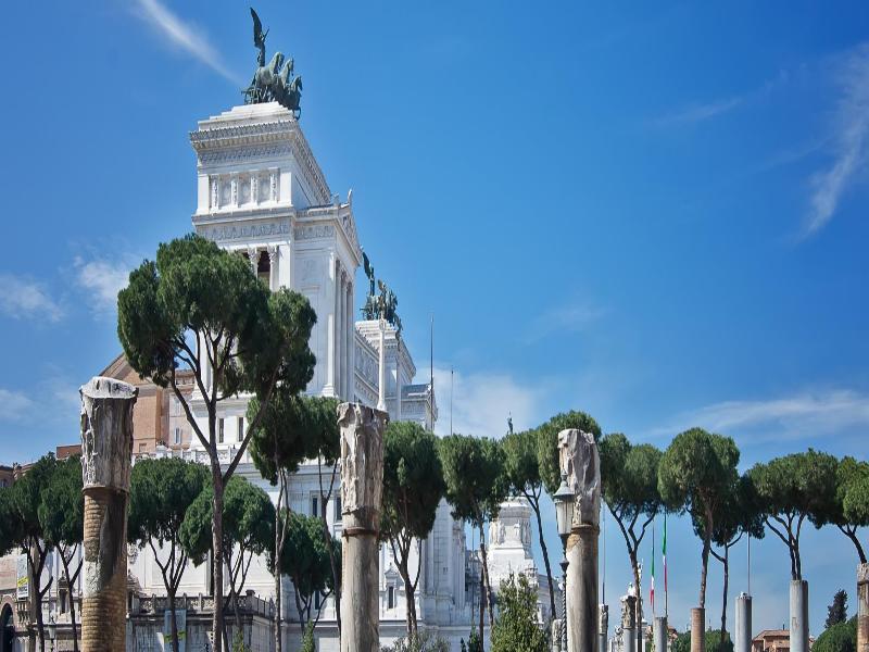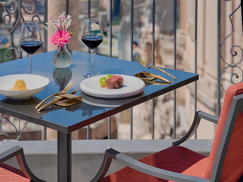 Alójate en una de las zonas arqueológicas más importantes de Roma cuando elijas el hotel de cinco estrellas NH Collection Roma Fori Imperiali. Este hotel completamente nuevo se encuentra al borde del histórico sitio de los Foros Imperiales, y los huéspedes pueden disfrutar de impresionantes vistas de las ruinas desde determinadas habitaciones. El hotel también está cerca de las otras atracciones principales de Roma, como el Coliseo y el Vaticano, además de estar próximo a los restaurantes y bares de Monti y a las principales zonas comerciales de Roma. El hotel cuenta con 42 habitaciones recién decoradas, incluyendo habitaciones superiores, habitaciones premium, Junior Suite, suites y habitaciones accesibles. Todas ellas disponen de grandes televisores de pantalla plana con canales internacionales, wifi gratuito y cafeteras. Una selección de almohadas y colchones súper cómodos te aseguran una buena noche de descanso. Los huéspedes comienzan el día con huevos, fruta, bollería, embutidos y especialidades italianas del bufé a la carta, mientras que los platos de pasta locales y la cocina mediterránea que se sirven en el restaurante del hotel se encargan de la cena. Uno de los puntos fuertes del hotel es la hermosa terraza-bar. Ubicada en la última planta, ofrece vistas panorámicas de los Foros Imperiales, iglesias y el paisaje urbano. Tomar un cóctel o un aperitivo aquí mientras el sol se pone sobre la ciudad es una experiencia inolvidable.