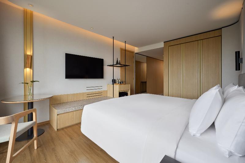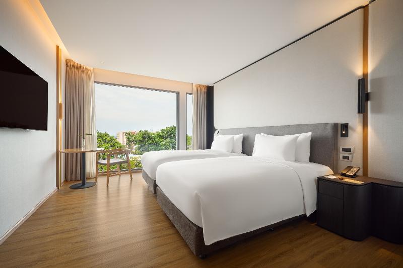 Hua Hin ofrece elegantes alojamientos con opciones de cama king, twin y literas, además de comodidades modernas como un Smart TV UHD 4K de 55”. Este moderno hotel urbano cuenta con una piscina infinita, gimnasio y opciones gastronómicas en el hotel con cocina internacional y tailandesa. Las familias disfrutarán del club infantil con una casa del árbol y un arenero, además de una piscina infantil independiente. Ubicado a pocos pasos de la playa y de las tiendas del centro, este hotel ofrece una escapada relajante, a solo 15 minutos en coche del aeropuerto de Hua Hin y a 2 horas y media de Bangkok. Disfruta de impresionantes vistas desde los ventanales y relájate con cócteles en el bar de la piscina de la azotea con vistas al océano.