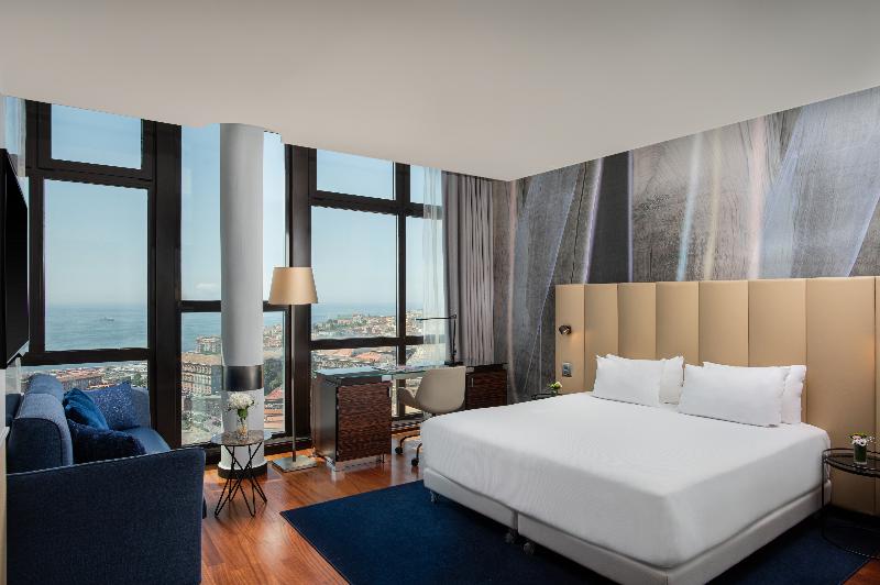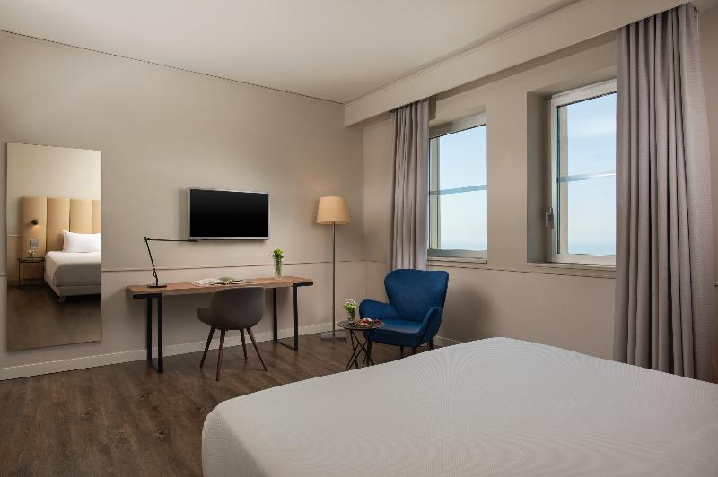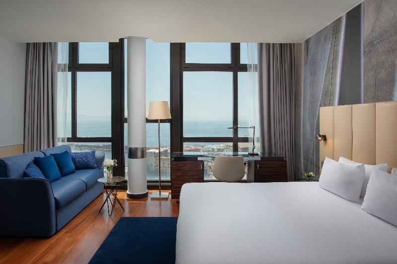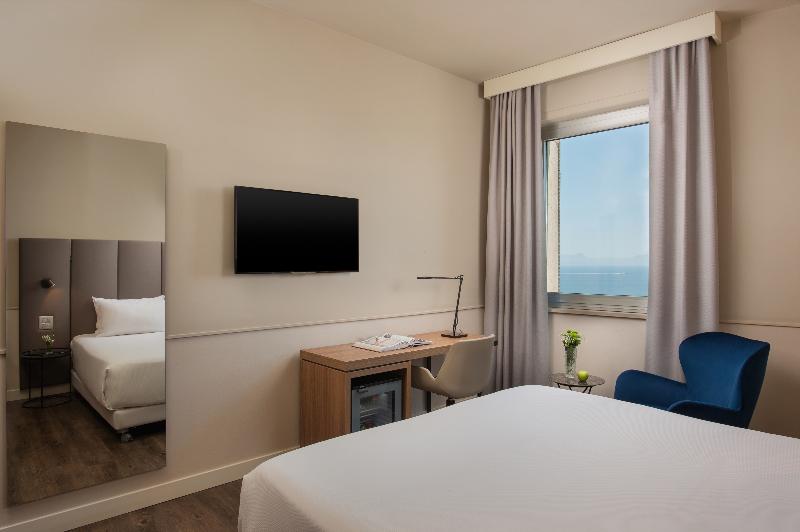El hotel NH Napoli Panorama, anteriormente conocido como NH Napoli Ambassador, es un moderno rascacielos con una ubicación ideal en el centro histórico de Nápoles. Desde aquí, podrás acceder fácilmente a algunos de los lugares más emblemáticos de la ciudad, como Castel Maschio Angioino, Palazzo Reale y Via Roma, con sus tiendas y restaurantes. El puerto también está cerca, desde donde puedes embarcar en un ferry a las islas de Capri o Ischia. Si viajas por negocios, te encantará estar a solo 500 m del centro de congresos Stazione Marittima de Trieste. El NH Napoli Panorama cuenta con 230 habitaciones, cada una con espectaculares vistas de la ciudad, el mar o el Monte Vesubio. Las habitaciones son cómodas y la decoración es relajante, con blancos impecables y toques otoñales. Hay wifi gratuito en cada habitación y en todo el hotel. Nuestro desayuno buffet se sirve fresco cada mañana y ofrece una gran variedad de opciones. El restaurante La Loggetta ofrece un menú internacional junto con muchas especialidades locales elaboradas con los ingredientes italianos más frescos. Si quieres relajarte con tu cóctel favorito, dispones de un acogedor bar. El hotel cuenta con un minigimnasio. También hay 7 salas de reuniones con capacidad para 200 personas.