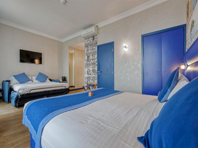 El Nice Excelsior, un hotel boutique de 4 estrellas, se encuentra en el centro de la ciudad, cerca de la estación central de tren de Niza. Este edificio histórico ha sido completamente renovado para ofrecer comodidades modernas. Sus 42 habitaciones se inspiran en diarios de viaje. Cada habitación cuenta con TV de pantalla plana, wifi y baño privado, con servicio de té y café disponible bajo petición. Disfruta del desayuno en el comedor elegantemente decorado y de refrescos de verano en el patio de nuestro Excel Bar. Nuestro dedicado equipo se compromete a garantizarte una estancia agradable.