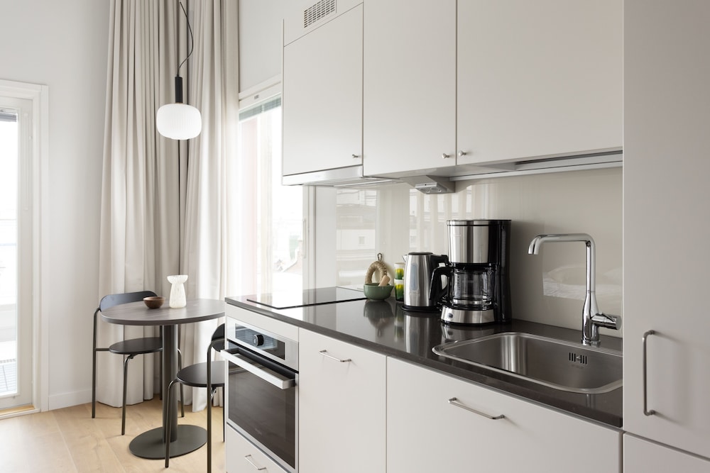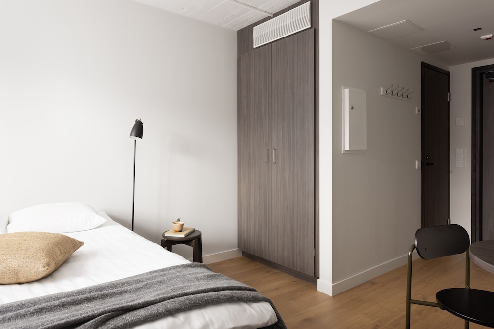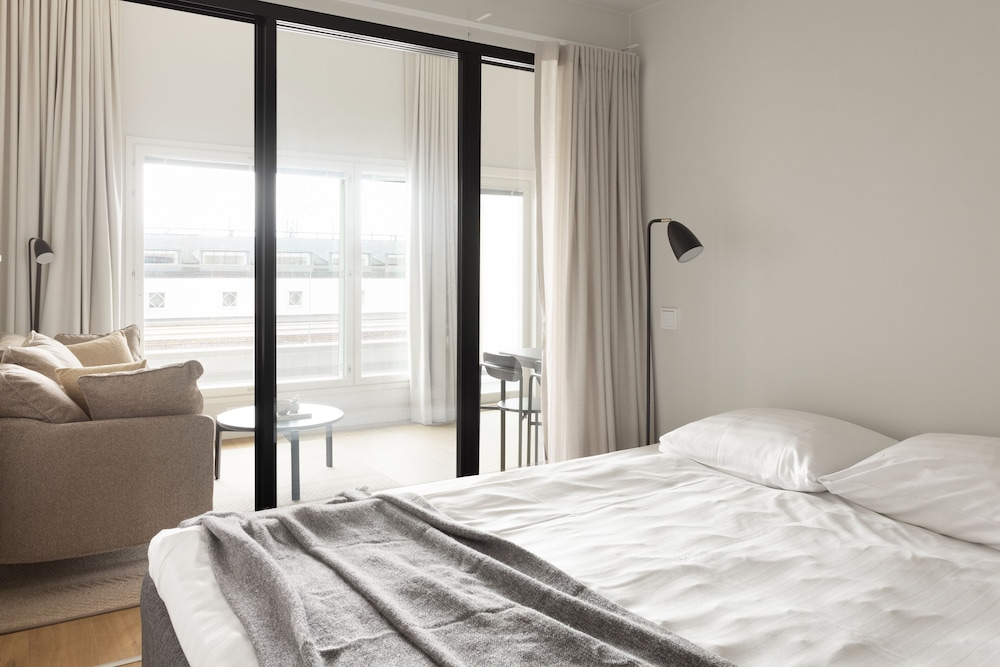 Facilities and services include free Wi-Fi, air conditioning, elevator, lobby, café, restaurant, rooftop terrace, sauna, fitness center, laundry, meeting room, and parking (extra charge).Rooms feature air conditioning, free Wi-Fi, television, and bathroom.Address: Kanavakatu 3, 00160 Helsinki, Finland.