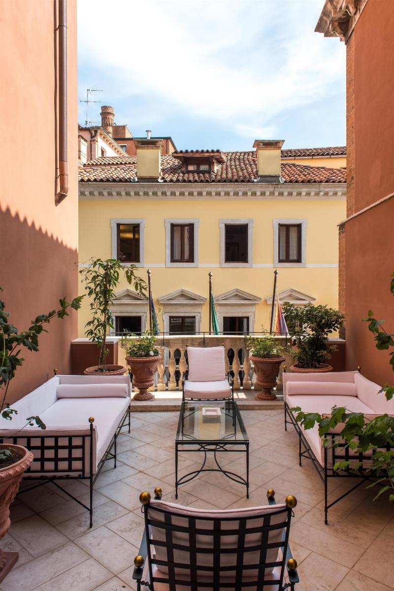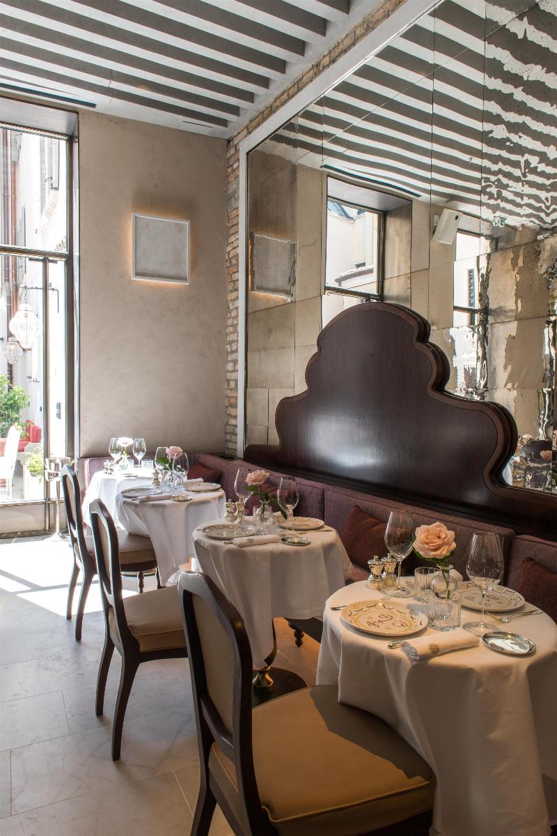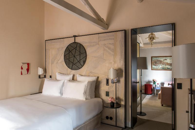 A pocos canales de la Piazza San Marco y del teatro de la ópera La Fenice, se alza el Nolinski Venezia. En armonía con la ciudad, las 43 habitaciones, incluidas 13 suites, junto con el spa de inspiración otomana, ofrecen un oasis de paz y la promesa de una estancia única e inolvidable. Desde Il Caffè y su patio, hasta el Library Bar, con sus 4000 libros y un fresco en el techo del artista Simon Buret, pasando por el vestíbulo, que consigue ser a la vez íntimo y majestuoso, el salón que alberga el Palais Royal Restaurant Venezia y, por supuesto, la piscina dorada con vistas al cielo y los tejados venecianos, cada rincón y detalle encarna el deseo de crear una hospitalidad excepcional. Algunos lugares tienen alma, otros son simplemente bellos. Y en el número XXII de marzo de la Calle Larga, resuena el alma del Nolinski.