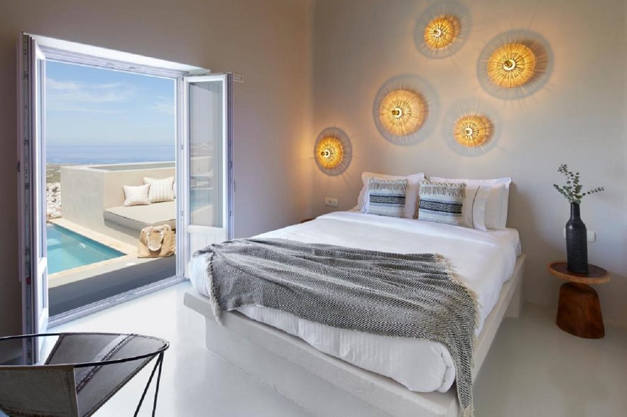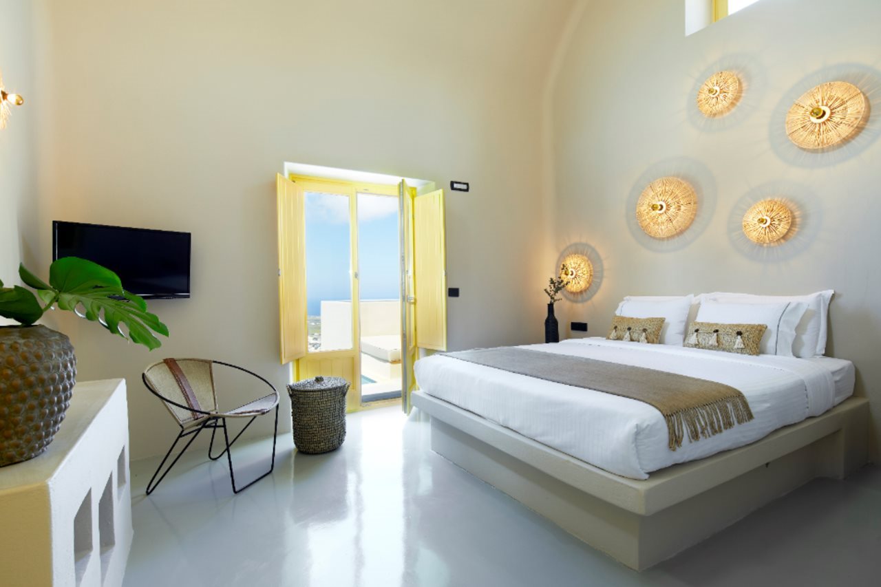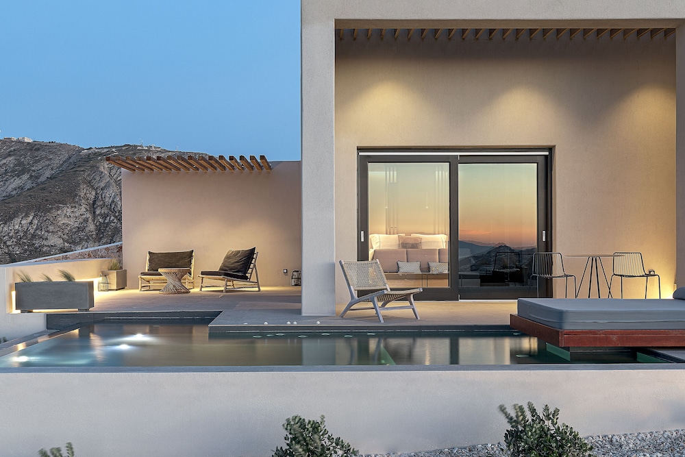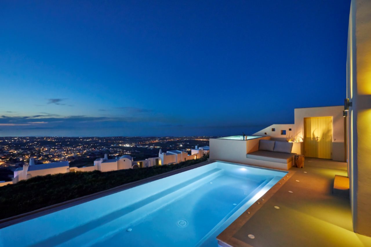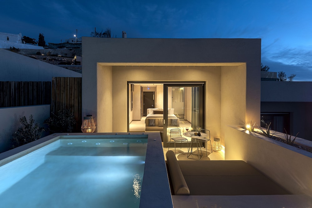 Las instalaciones y servicios incluyen servicio de transporte, acceso gratuito a Internet / WiFi, aparcamiento, servicio de negocios, piscina e instalaciones de conserjería.Las habitaciones cuentan con aire acondicionado, balcón / terraza, bañera y ducha, TV por cable / satélite, cunas bajo petición, servicio de limpieza diario, escritorio, secador de pelo, minibar, baño privado, servicio de habitaciones, detector de humo, caja de seguridad en la habitación, teléfono, televisión y WiFi gratis.Dirección: Pyrgos Kallistis, Santorini 84700, Grecia.