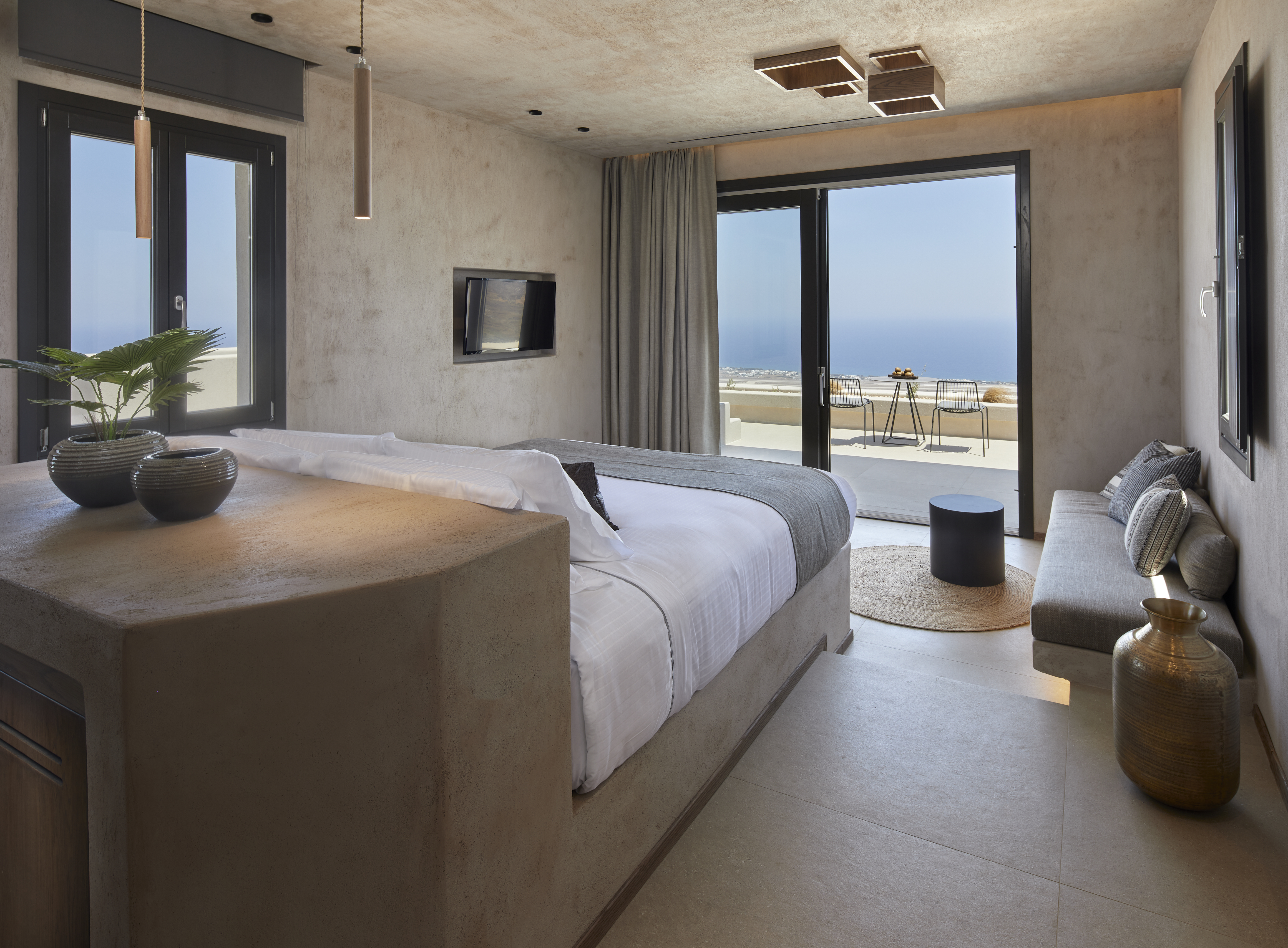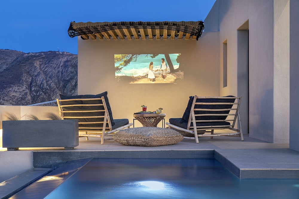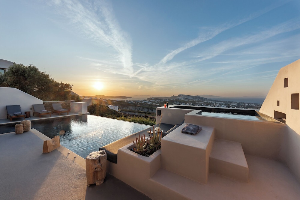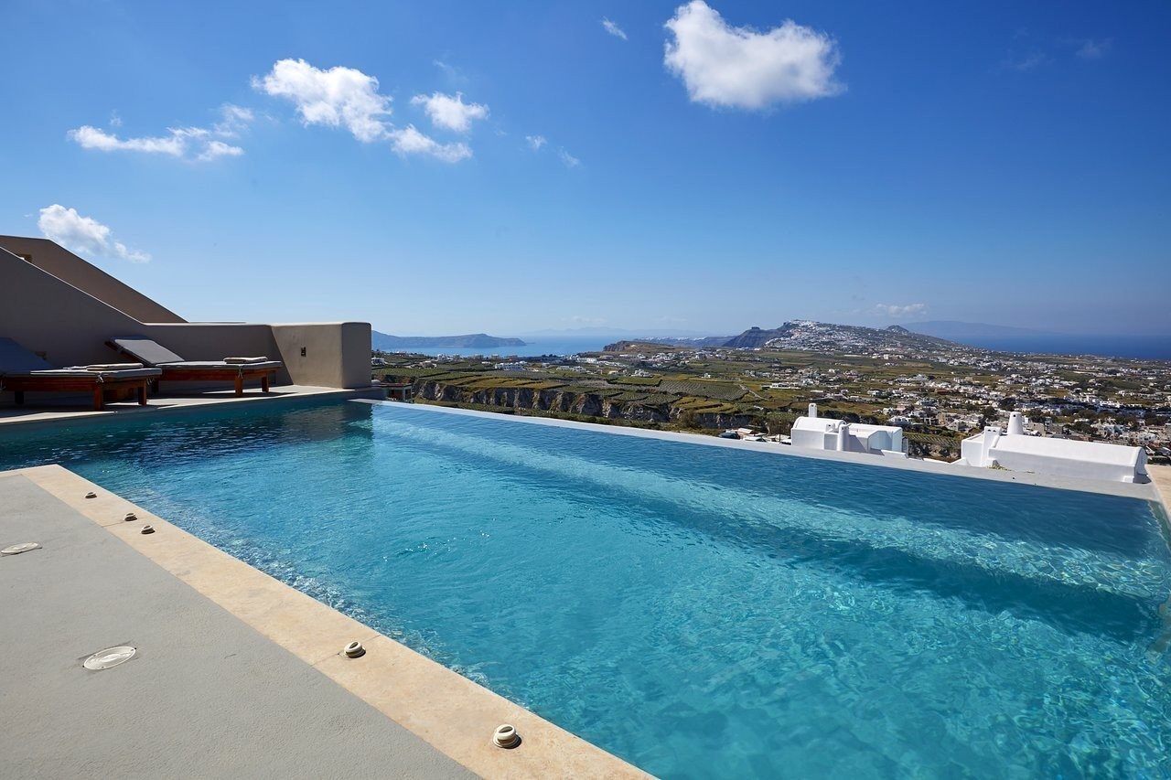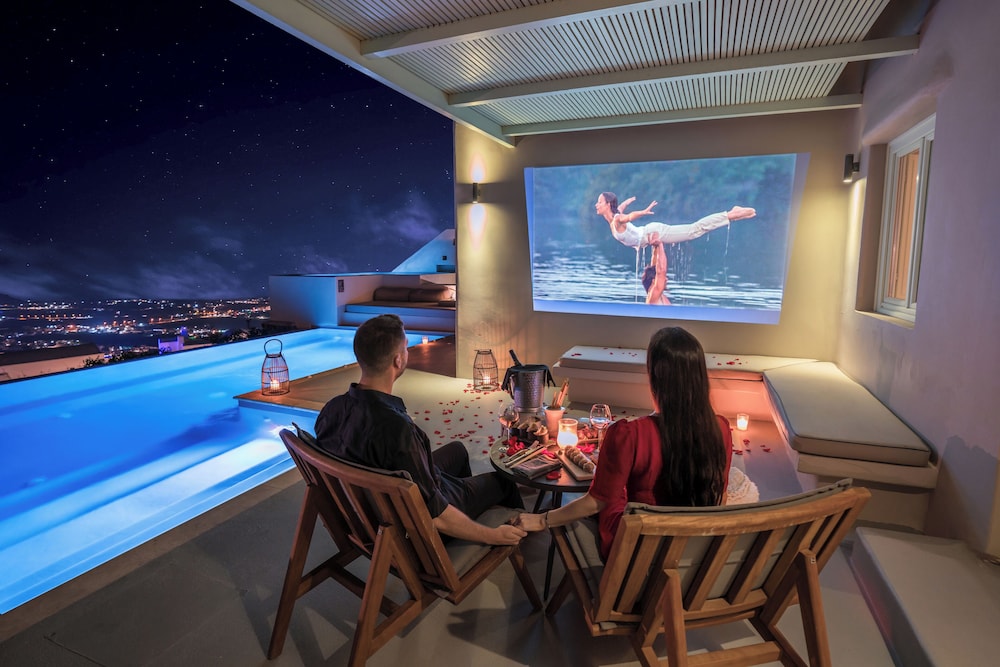 Las instalaciones y servicios incluyen servicio de transporte, acceso gratuito a Internet / WiFi, aparcamiento, servicio de negocios, piscina e instalaciones de conserjería.Las habitaciones cuentan con aire acondicionado, balcón / terraza, bañera y ducha, TV por cable / satélite, cunas bajo petición, servicio de limpieza diario, escritorio, secador de pelo, minibar, baño privado, servicio de habitaciones, detector de humo, caja de seguridad en la habitación, teléfono, televisión y WiFi gratis.Dirección: Pyrgos Kallistis, Santorini 84700, Grecia.