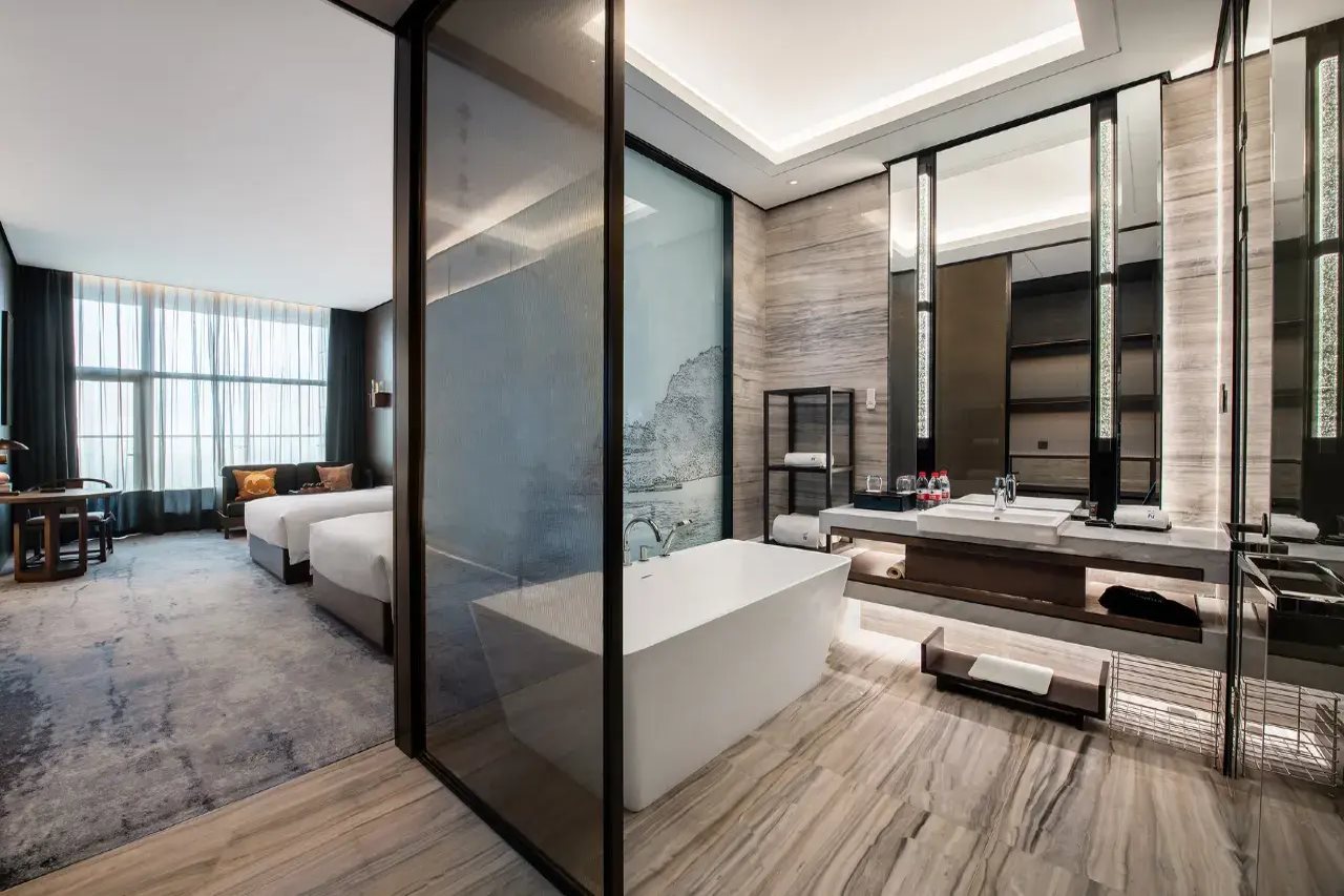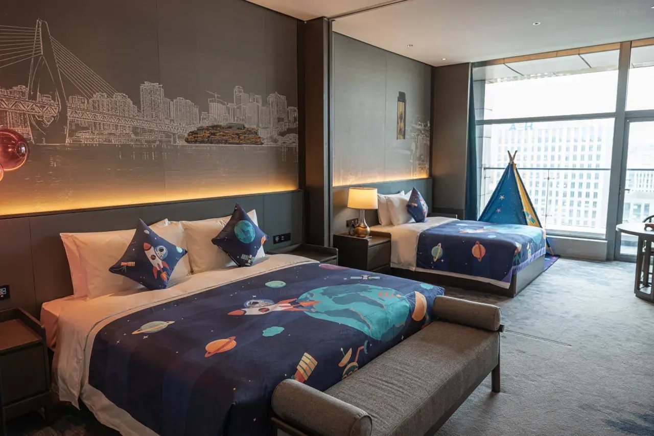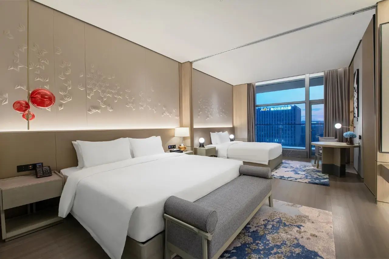 Las instalaciones y servicios incluyen recepción 24 horas, aire acondicionado, bar, servicios de negocios (con cargo adicional), cafetería, aparcamiento (con cargo adicional), conserjería, salas de conferencias (con cargo adicional), ascensor(es), jardín, gimnasio, lavandería (con cargo adicional), restaurante (con cargo adicional) y wifi.Las habitaciones incluyen aire acondicionado, balcón/terraza, albornoz, TV por cable/satélite, servicio de limpieza, escritorio, secador de pelo, habitaciones para no fumadores, baño privado, servicio de habitaciones (con cargo adicional), caja fuerte, ducha, teléfono, artículos de aseo, toallas y wifi.Dirección: Airport East Second Road, n.° 21, Two Rivers New Area, Chongqing 401120, China