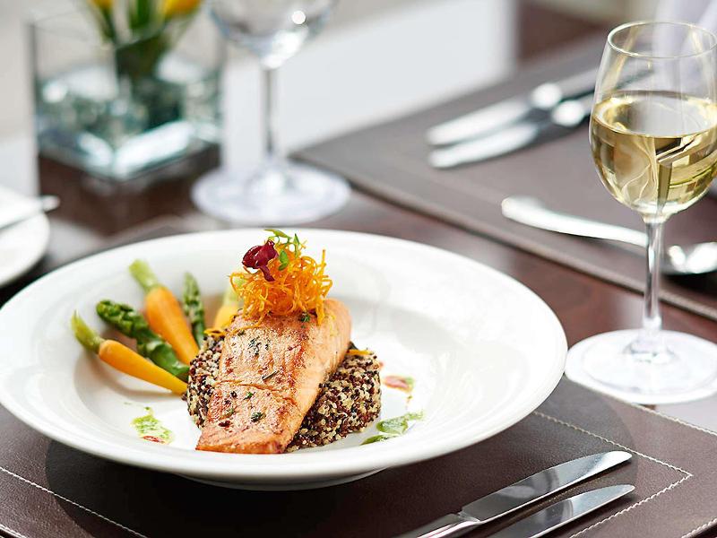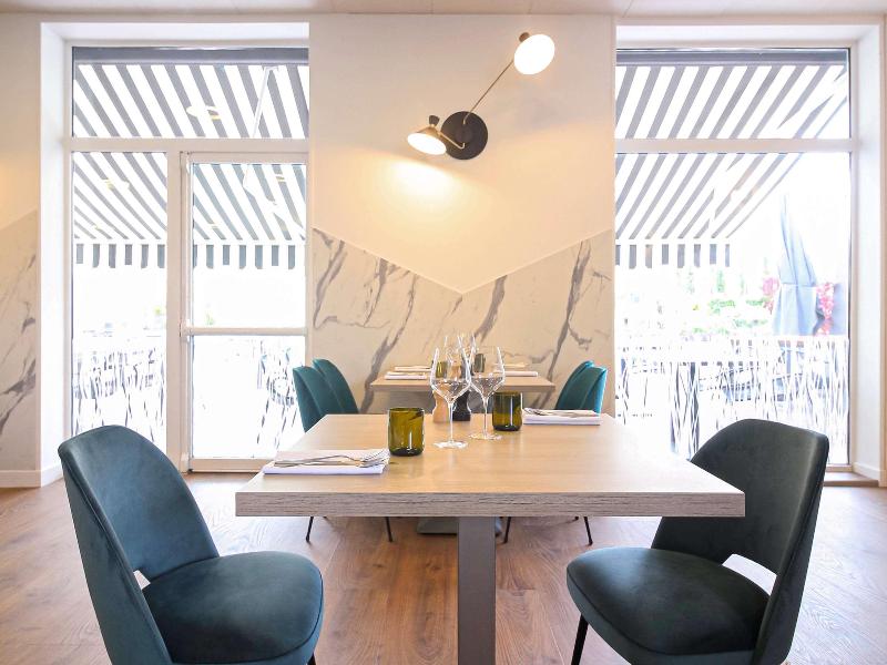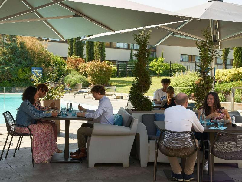 El restaurante no está mal, y el hotel es de calidad Mercure. Personal amable y piscina al aire libre. El baño partido en dos es incómodo y nada acogedor. Calidad de sueño bien y limpieza bien. Taxi...