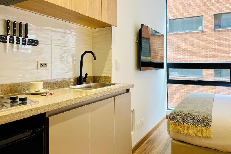 Este apartahotel libre de humo en Bogotá ofrece prácticos servicios de botones y recepción 24 horas. Cada una de las 10 habitaciones cuenta con cocina equipada con refrigerador y microondas, Smart TV de 40 pulgadas con programación por cable y wifi gratis. También dispone de lavandería y aparcamiento gratuito en las instalaciones. Nuevecuatro by Wynwood House tiene una ubicación céntrica, a 5 minutos en coche del Parque de la 93 y del Centro Comercial Andino, lo que te sitúa cerca de atracciones populares como el Consulado General de España y la Embajada de España. El Aeropuerto Internacional El Dorado (BOG) está a unos 16, 6 km de distancia.