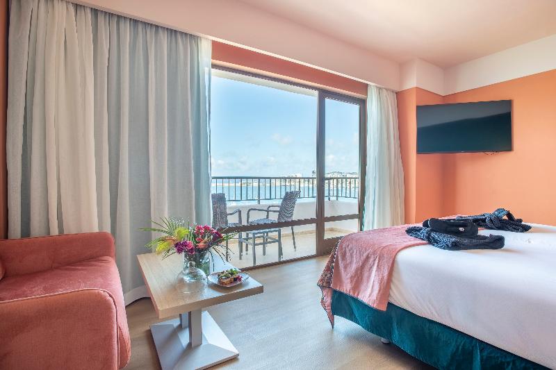 Este magnífico hotel goza de una ubicación tranquila y de impresionantes puestas de sol desde su terraza, junto a la playa de Es Pouet en la bahía de San Antonio, y con fácil acceso al centro de la ciudad, lo que lo convierte en el lugar ideal para familias o parejas que buscan tranquilidad y entretenimiento al mismo tiempo. El famoso bar chill-out Café del Mar se encuentra a unos 2 kilómetros de distancia, y hay muchos otros bares y discotecas modernos y elegantes para aquellos que deseen bailar toda la noche. Además, puede que a los huéspedes les interese saber que el aeropuerto de Ibiza está a solo 18 kilómetros. Las habitaciones del hotel están decoradas con buen gusto en un estilo moderno y fresco, y ofrecen el espacio perfecto para una escapada romántica. Las instalaciones del hotel incluyen una fantástica piscina, un restaurante con cocina en vivo con exquisitas especialidades, así como una terraza con vistas panorámicas al mar donde se pueden degustar deliciosos cócteles.
