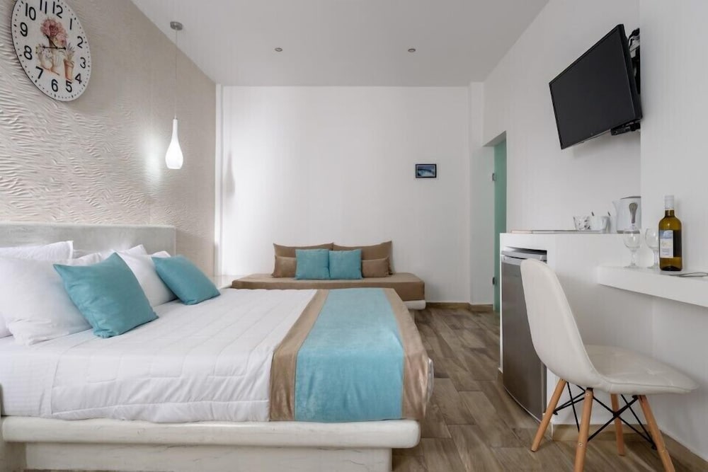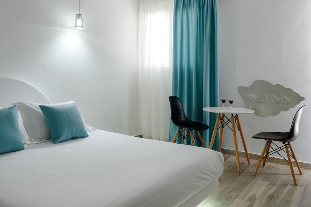 En Santorini (Fira), a pocos minutos de Museo Prehistórico de Thera y Navys Waterworld Dive Center se sitúa Oasis Hotel. Este hotel se encuentra cerca de Museo de Folclore de Santorini y de Catedral ortodoxa metropolitana.Habitaciones Te sentirás como en tu propia casa en una de las 5 habitaciones con aire acondicionado, frigorífico y televisor LCD. Las habitaciones disponen de balcón o patio con mobiliario. La conexión a Internet wifi gratis te mantendrá en contacto con los tuyos; también podrás ver tu programa favorito en el televisor con canales por satélite. El baño privado con ducha está provisto de artículos de higiene personal gratuitos y secador de pelo.Servicios Con una terraza donde descansar y comodidades como conexión a Internet wifi gratis y servicios de conserjería, ¡no te faltará de nada!Para comer Todos los días se sirve un desayuno continental gratuito.Servicios de negocios y otros Tendrás servicio de tintorería, depósito de equipaje y caja fuerte en recepción a tu disposición. Se ofrece servicio de transporte al aeropuerto (ida y vuelta) de pago (disponible las 24 horas).