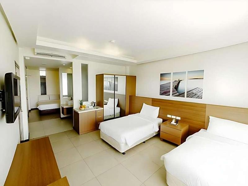 Date un chapuzón en una de las 2 piscinas al aire libre o disfruta de otras comodidades recreativas, que incluyen bicicletas para alquilar. Este resort también cuenta con acceso inalámbrico a internet de cortesía, servicios de conserjería y una sala de juegos electrónicos. Para el almuerzo o la cena, visita Azure, un restaurante que se especializa en cocina internacional. También puedes comer en la cafetería y se ofrece servicio a la habitación (en un horario limitado). Relájate con tu bebida favorita en el bar o en el bar junto a la piscina. Se sirve un desayuno completo gratuito todos los días de 7:00 a. m. a 9:00 a. m. Las comodidades incluyen un centro de negocios, periódicos gratuitos en el vestíbulo y servicios de tintorería/lavandería. Se proporciona un servicio de transporte al aeropuerto de ida y vuelta por un cargo adicional (disponible si lo solicitas) y hay estacionamiento sin valet parking gratuito disponible en las instalaciones. Siéntete como en casa en una de las 30 habitaciones con aire acondicionado, refrigerador y minibar. Los televisores de pantalla plana con programación por cable brindan entretenimiento, mientras que el acceso inalámbrico a internet de cortesía te mantiene conectado. Los baños privados con ducha cuentan con cabezales de ducha tipo lluvia y artículos de tocador gratuitos. Las comodidades incluyen teléfonos, así como cajas fuertes y escritorios. Las distancias se muestran con una precisión de 0. 1 millas y kilómetros. Spanish Belfry - 0. 8 km / 0. 5 mi- Catedral de San Jose - 3. 1 km / 1. 9 mi- Bohol National Museum - 3. 2 km / 2 mi- Baclayon Church - 4. 1 km / 2. 5 mi- Lite Port Center - 4. 5 km / 2. 8 mi- Tagbilaran Wharf - 4. 7 km / 2. 9 mi- San Isidro Beach - 8 km / 5 mi- Alburquerque Church and Convent - 8. 6 km / 5. 3 mi- Panglao Beach - 9. 9 km / 6. 2 mi- Hinagdanan Cave - 10. 6 km / 6. 6 mi- White Beach - 13 km / 8. 1 mi- Dumaluan Beach - 13. 1 km / 8. 2 mi- Momo Beach - 16. 6 km / 10. 3 mi- Alona Beach - 16. 6 km / 10.