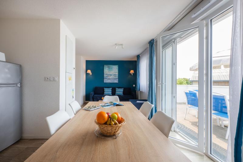 Con su cálido y soleado clima, la isla de Noirmoutier es un destino lleno de encanto que no te puedes perder. Relájate, conéctate con la naturaleza y disfruta descubriendo las marismas, las dunas de arena y los bosques de robles. El Domaine des Pins está situado en el corazón del Bois de la Chaise, el lugar más famoso de la isla de Noirmoutier, en un terreno de 93 hectáreas bordeado por riachuelos, en una ubicación tranquila a solo 700 m de la famosa playa Les Dames. La residencia Odalys Prestige Odalys Le Domaine des Pins, construida al estilo tradicional de la isla de Noirmoutier, consta de 7 atractivos edificios encalados con contraventanas azules. Encontrarás alquileres vacacionales que van desde estudios para 2 personas hasta apartamentos de 2 dormitorios para 7 personas, todos bien equipados con TV, wifi gratis, cocina americana (vitrocerámica, microondas/grill, lavavajillas, nevera, cafetera, hervidor de agua), baño o ducha con WC y balcón o terraza. A tu disposición: Piscina cubierta/al aire libre climatizada, piscina infantil, baño turco (con suplemento, reserva in situ), sala de cardio, parque infantil, pista de petanca, ping-pong, lavandería (con suplemento), consigna de equipaje, aparcamiento exterior gratuito (1 plaza/apartamento, reserva previa obligatoria), wifi gratis. Ten en cuenta: Te recomendamos traer o alquilar bicicletas para descubrir esta maravillosa isla.