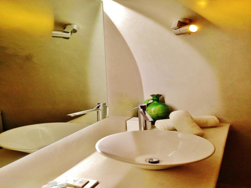 No hay dudas que la ubicación del hotel es imponente; sobre el acantilado, con unas vistas increíbles de la caldera y la ciudad.