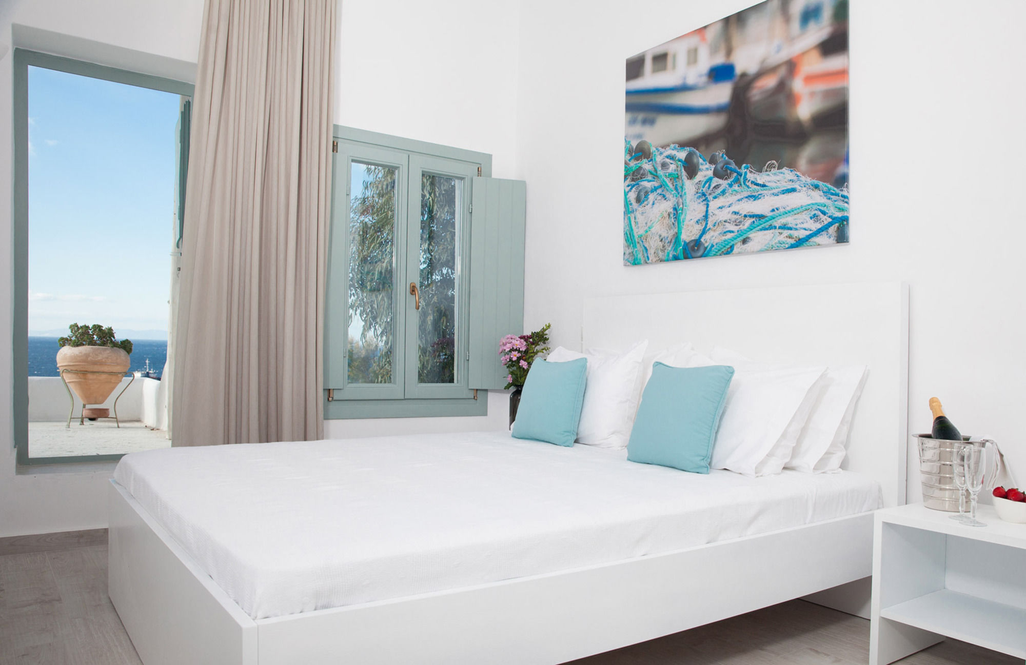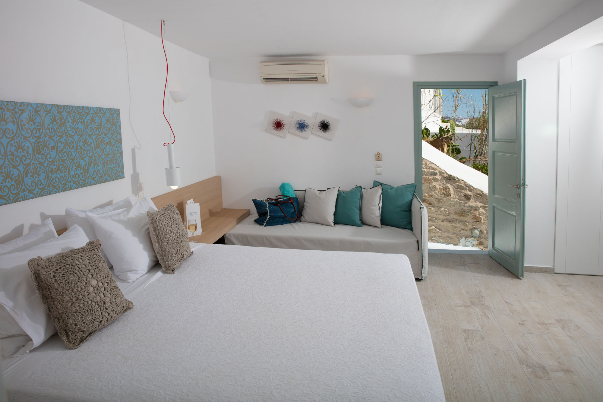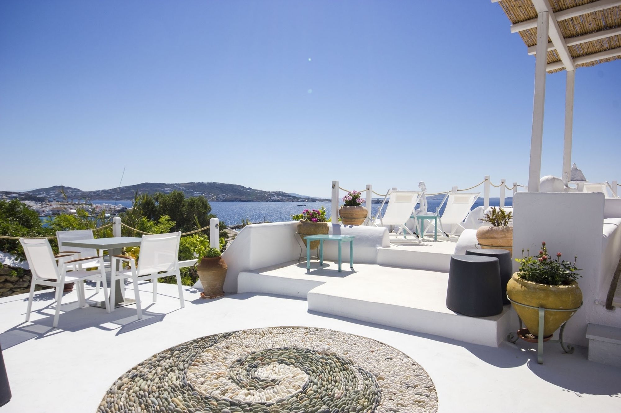 En Omiros The Feelgood Hotel gozarás de una buena ubicación en Míkonos, junto al mar, a pocos minutos de Museo Arqueológico de Míkonos y en las inmediaciones de Panagia Paraportiani. Este hotel se encuentra cerca de Agia Anna Beach y de Biblioteca de Míkonos.Habitaciones Te sentirás como en tu propia casa en una de las 12 habitaciones con aire acondicionado, frigorífico y televisor de plasma. Las habitaciones disponen de balcón o patio con mobiliario. La conexión a Internet wifi gratis te mantendrá en contacto con los tuyos; también podrás ver tu programa favorito en el televisor con canales digitales. El baño privado con ducha está provisto de artículos de higiene personal gratuitos y secador de pelo.Servicios Recibe los cuidados que te mereces gracias al servicio de masajes o aprovecha instalaciones recreativas como piscina al aire libre y muchas más. Encontrarás también conexión a Internet wifi gratis y servicios de conserjería.Para comer Con cafetería y snack-bar o delicatessen a tu disposición, tienes para elegir a la hora de comer algo. Disfruta de tu bebida favorita en el bar o lounge o en el bar junto a la piscina.Servicios de negocios y otros Tendrás lavandería y café en las zonas comunes a tu disposición. Se ofrece servicio de transporte al aeropuerto (ida y vuelta) de pago a petición.