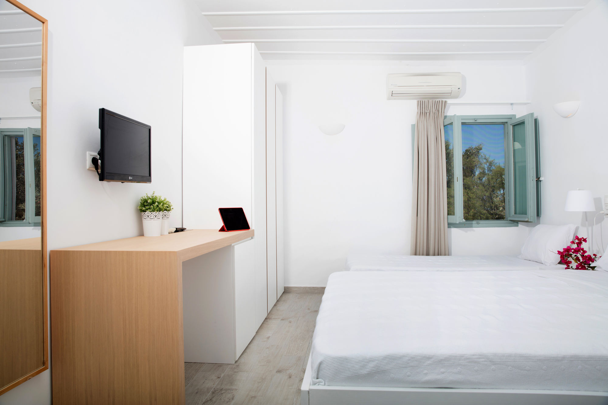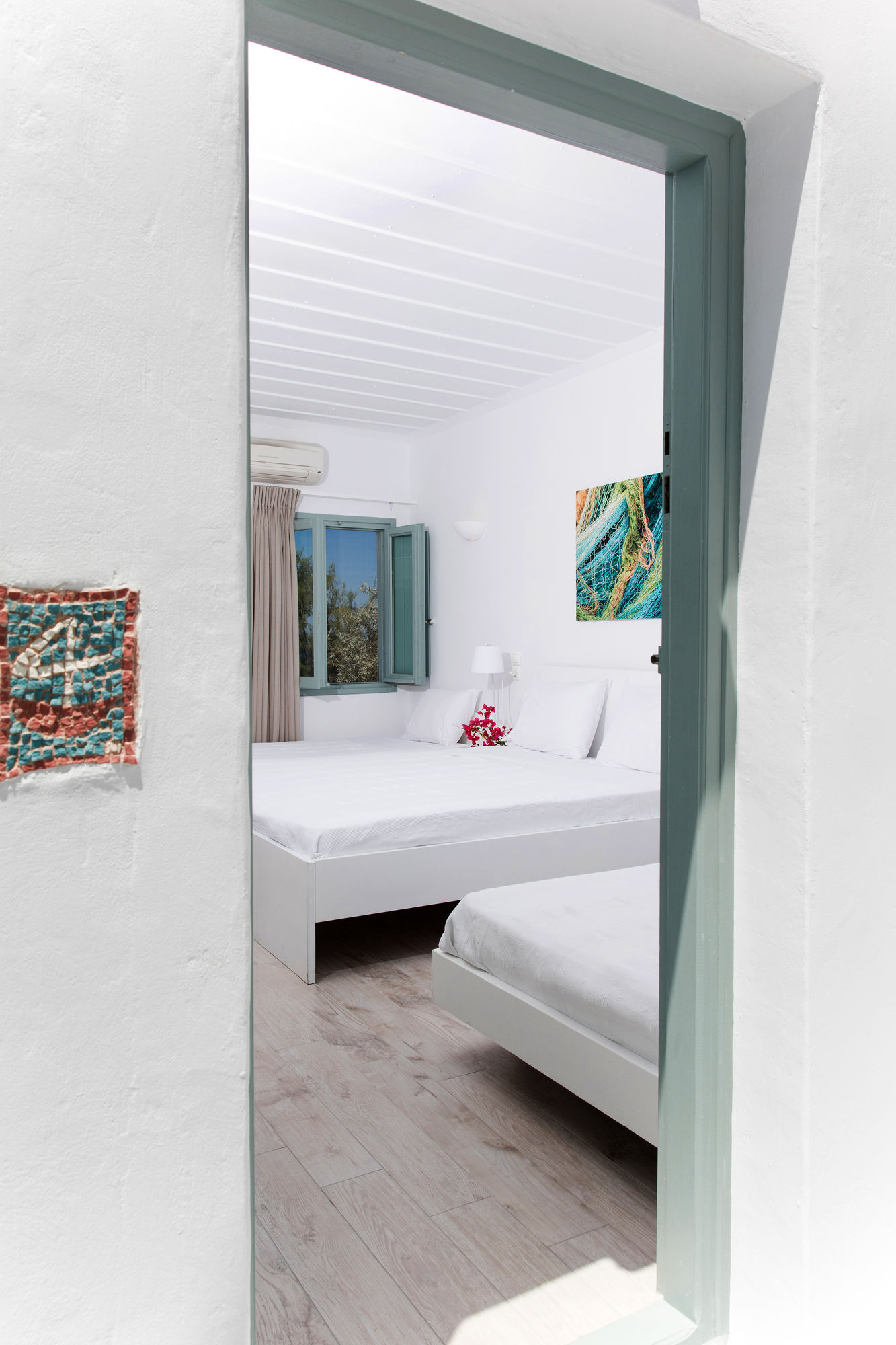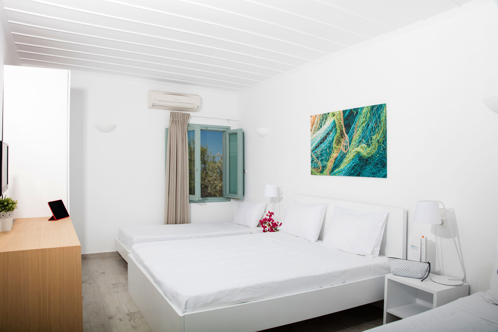 En Omiros The Feelgood Hotel gozarás de una buena ubicación en Míkonos, junto al mar, a pocos minutos de Museo Arqueológico de Míkonos y en las inmediaciones de Panagia Paraportiani. Este hotel se encuentra cerca de Agia Anna Beach y de Biblioteca de Míkonos.Habitaciones Te sentirás como en tu propia casa en una de las 12 habitaciones con aire acondicionado, frigorífico y televisor de plasma. Las habitaciones disponen de balcón o patio con mobiliario. La conexión a Internet wifi gratis te mantendrá en contacto con los tuyos; también podrás ver tu programa favorito en el televisor con canales digitales. El baño privado con ducha está provisto de artículos de higiene personal gratuitos y secador de pelo.Servicios Recibe los cuidados que te mereces gracias al servicio de masajes o aprovecha instalaciones recreativas como piscina al aire libre y muchas más. Encontrarás también conexión a Internet wifi gratis y servicios de conserjería.Para comer Con cafetería y snack-bar o delicatessen a tu disposición, tienes para elegir a la hora de comer algo. Disfruta de tu bebida favorita en el bar o lounge o en el bar junto a la piscina.Servicios de negocios y otros Tendrás lavandería y café en las zonas comunes a tu disposición. Se ofrece servicio de transporte al aeropuerto (ida y vuelta) de pago a petición.