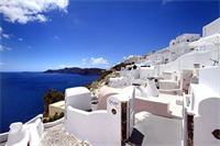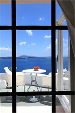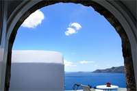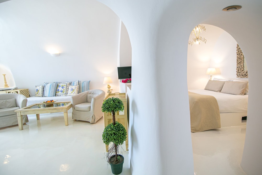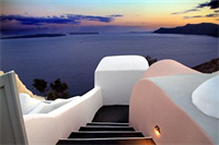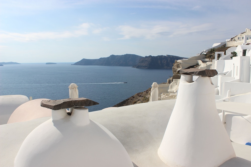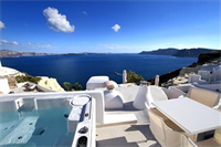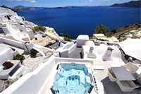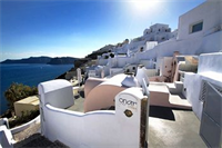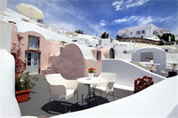 Este hotel, decorado al estilo típico de las Cícladas, se encuentra en Oia, a la entrada d...