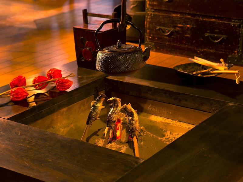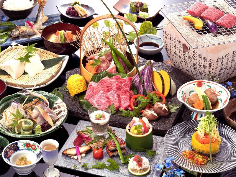 ツアー37名で炭火焼ランチを頂きました。由布院から山の奥に入って行きます。まろやか梅酒一口、サーモンのカルパッチョ、大分和牛100gと県産鶏200gと野菜は炭火の上に乗せた焼き網の上で自分で焼きます。塩、たれ、味噌の3種類にお好みで付けます。刺身、小鉢(とり天)、八遇来豆腐、野菜の煮物、ご飯、味噌汁、香の物、わらび餅。どれも大変美味しく、同じテーブルになった、初めてお会いする方たちと、機会があれば...