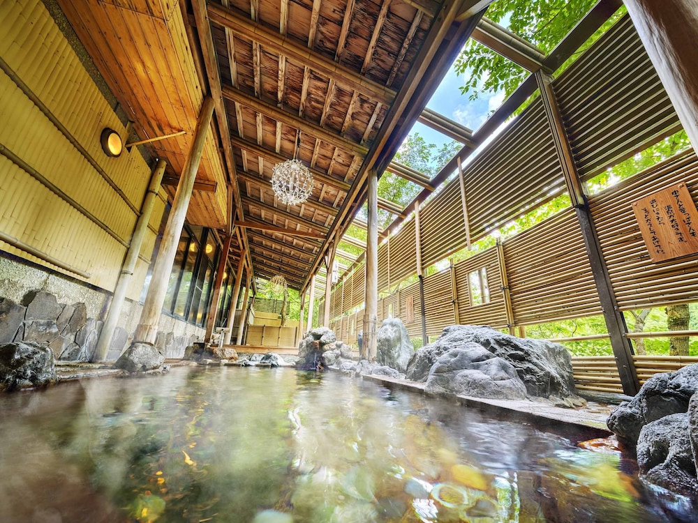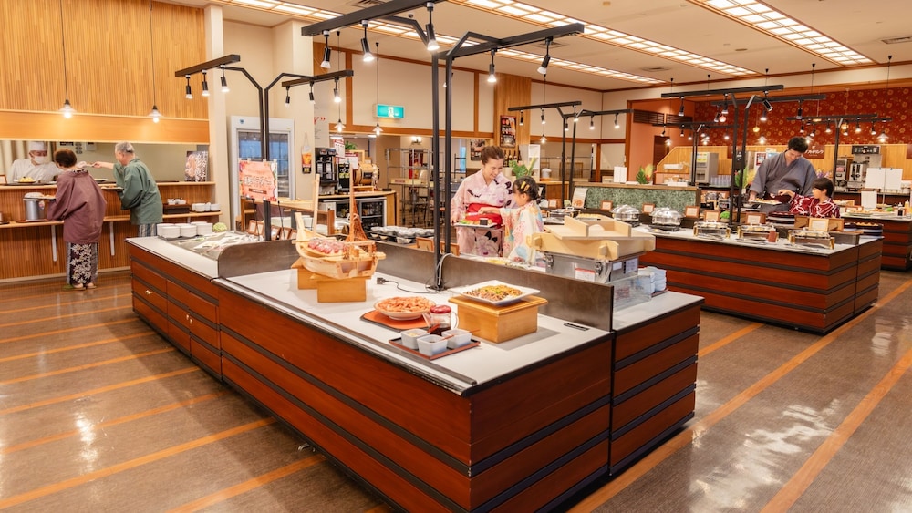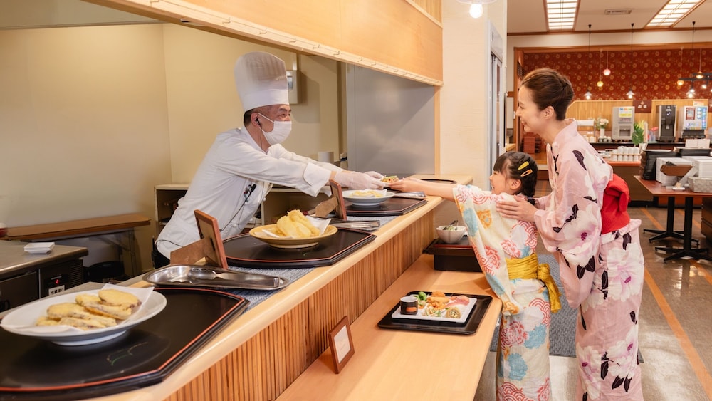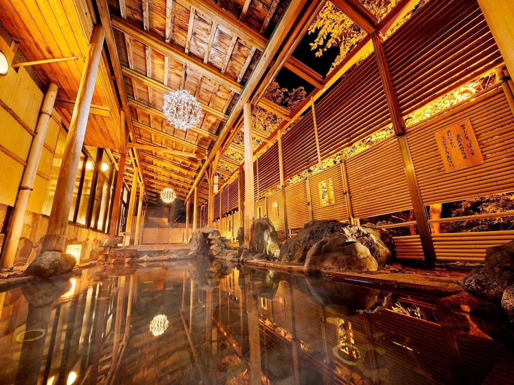 En Kaga, Ooedo Onsen Monogatari Yamanaka Saichoraku- Caters to Women te permite llegar cómodamente a Puente de Korogi y a Gran Sugi de Kayano. Este ryokan se encuentra cerca de Puente Ayatori y de Museo Conmemorativo Mori Mitsuko Ichiza.Habitaciones Te sentirás como en tu propia casa en una de las 71 habitaciones con aire acondicionado, frigorífico y televisor LCD. Mantén el contacto con los tuyos gracias a la conexión a Internet wifi gratis. El cuarto de baño está provisto de bañera y ducha independientes y secador de pelo. Las comodidades incluyen caja fuerte y escritorio, además de un servicio de limpieza disponible todos los días. Relájate con tratamientos faciales y aprovecha los prácticos servicios como conexión a Internet wifi gratis, entre otros.Para comer Tienes un restaurante a tu disposición para comer algo en Ooedo Onsen Monogatari Yamanaka Saichoraku- Caters to Women.Servicios de negocios y otros Tendrás servicio de recepción 24 horas, depósito de equipaje y caja fuerte en recepción a tu disposición. Se ofrece servicio de transporte desde la estación de tren gratuito y un aparcamiento sin asistencia gratuito.