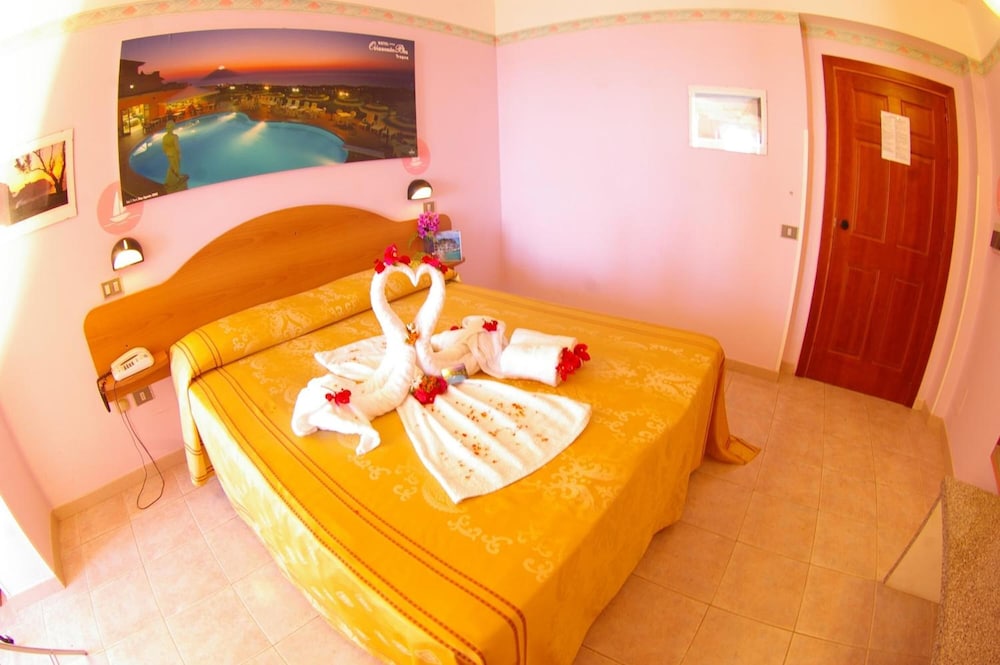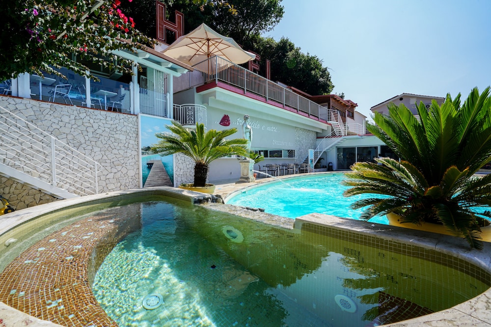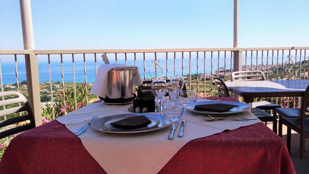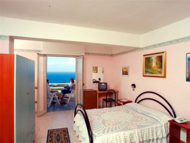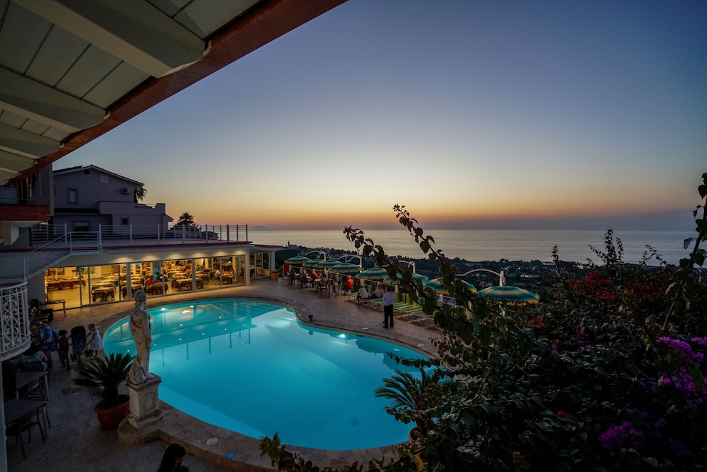 El hotel Orizzonte Blu está situado en una colina con vistas panorámicas, a 1,5 km del centro de Tropea y a 2 km de la playa. El aeropuerto de Lamezia Terme está a unos 62 km del hotel.Los servicios e instalaciones del hotel incluyen recepción 24 horas, vestíbulo pequeño con ascensores, sala de TV, restaurante, conexión WiFi a Internet, piscina al aire libre con hidromasaje, terraza solarium con bar de piscina, terraza pequeña de ejercicio con aparatos de gimnasio, juegos para niños y sala de juegos con mesa de tenis y futbolín. El hotel también dispone de un servicio de autobús a la playa y al centro de Tropea.Todas las habitaciones están equipadas con ducha / WC, caja fuerte (con cargo adicional), A/C, TV, teléfono, mini nevera y un pequeño balcón.El hotel dispone de aparcamiento.*Nota: En caso de elegir la opcion "All inclusive light" favor de notar que estan incluidos las siguientes prestaciones: Desayuno, almuerzo y cena en forma de buffete con 2 entradas y 2 platos fuertes como opcion y vegetales para acompañar. Como bebidas estan incluidas un 1/4 l de vino, ½ l de agua y jugo. Bebidas alcoholicas y non alcoholicas gratuitas se sirven de las 10.00 horas hasta las 22.00 horas en el bar de la piscina. Dirección: Località Pettilupo, 89865 S. Domenica di Ricadi, Tropea, Calabria, Italia.