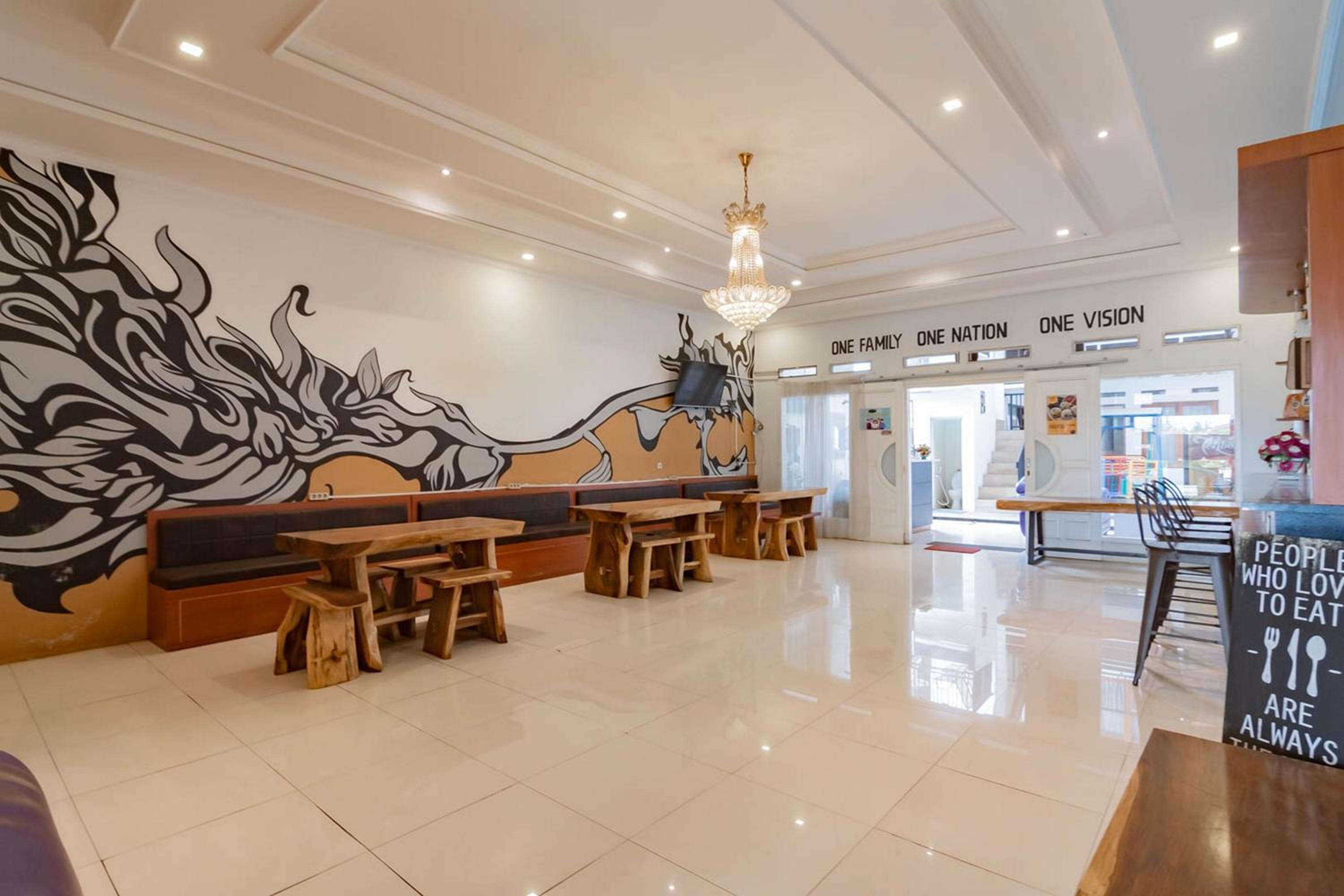 OYO 1271 One Family Guesthouse is a classy and tasteful property with soothing and charming décor. Situated in Lembang, the property is close to Observatorium Bosscha, Begonia Park, Miniature Railway Park, De' Ranch, Alun Alun Lembang, and Floating Market.Special FeaturesThe property has an appealing lobby area with trendy sofas. The rooms speak of a charming accent and are nicely done with wooden flooring, elegant furniture, and large windows.FacilitiesAC, TV, mini-fridge, and seating areas are there in the rooms while the bathrooms have hair-dryers. Other facilities provided by the property include CCTV security, reception, in-house restaurant, swings and parking.NearbyGuests can enjoy various delicacies at the nearby restaurants namely Gubug Makan Mang Engking, Meltic Resto, Balibu Rumah Makan Khas Sunda, and Rumah Kayu.