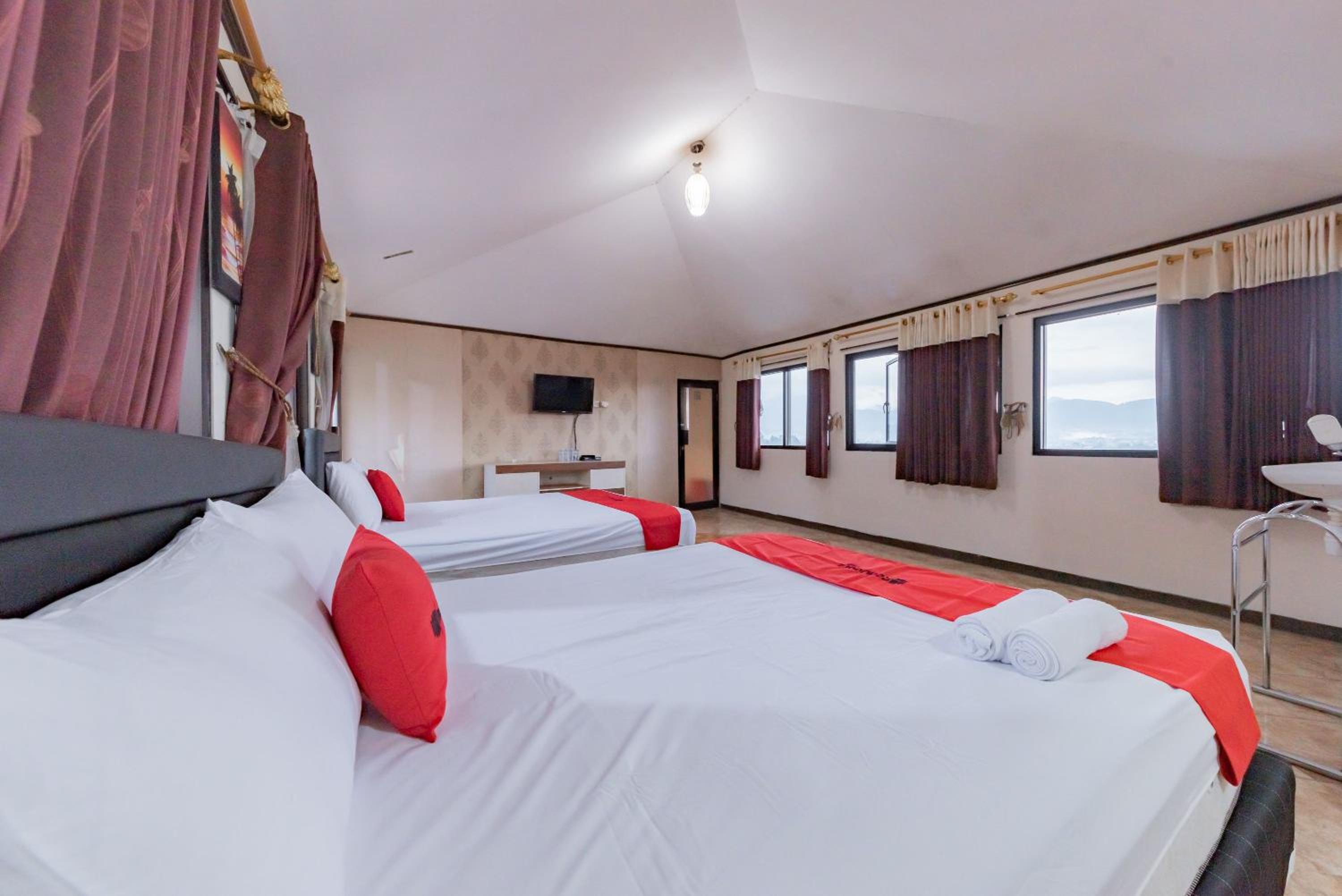 OYO 677 Rianes Family Guest House is a super trendy homestay with modern and tastefully adorned rooms that are perfect for corporate travellers and young coupless. Situated in Lembang, the property is close to attractions like Putri Mountain, Begonia Garden, Lembah Dewata, De' Ranch, and Curug Maribaya.Special FeaturesThe common area has attractive décor and tasteful furniture. There is a dining space too. The property offers an expansive welcome to the guests. The rooms are trendily furnished and have large windows for sunlight. The lobby area is well-decorated.FacilitiesWhile the rooms come with AC, Free Wifi, TV, king-sized beds the bathrooms come with a geyser. Ample parking space is provided too. The property provides CCTV security to its guests. The property boasts of a stylish swimming pool and is ideal for relaxing after a tiring day of work or sightseeing.NearbyLocal delicacies can be enjoyed at Kurnia Jatim Restaurant, Gubug Makan Mang Engking, and RM Cikole.