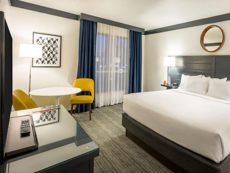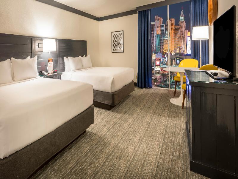 OYO Hotel & Casino, anteriormente Hooters Casino Hotel, se encuentra a una cuadra de la famosa Las Vegas Strip y justo enfrente del monorraíl de Las Vegas, lo que te brinda acceso a todo lo que Las Vegas tiene para ofrecer. La propiedad cuenta con 657 habitaciones y suites recientemente renovadas, el Hooters Restaurant más concurrido del mundo y nuevos lugares de entretenimiento como the Porch y The Underground Lounge. El casino de 2787 metros cuadrados ofrece 340 máquinas tragamonedas y de video póker, 20 juegos de mesa y una casa de apuestas deportivas completa de William Hill. OYO Hotel & Casino te invita a jugar, hospedarte y comer con nosotros las 24 horas, los 7 días de la semana, los 365 días del año. OYO Hotel & Casino ofrece modernas habitaciones con amplios ventanales, wifi gratis, TV de pantalla plana y área de descanso. Puedes cenar en el hotel en el mundialmente famoso Hooters Restaurant o en el Steak 'n Shake más grande del mundo. Disfruta de Caribou Coffee, donas Krispy Kreme o tu pizza favorita de Pizza Hut en el Southside Eatery. The Underground Lounge tiene un ambiente cómodo y divertido donde puedes relajarte mientras disfrutas de una bebida. Con 26 televisores, puedes hacer apuestas en la casa de apuestas deportivas del casino contigua a The Underground Lounge. El bar junto a la piscina, The Porch, es la sede de los refrigerios y cuenta con beer pong, Jenga gigante y otros juegos. El gimnasio del hotel está abierto las 24 horas para tu comodidad. Al hacer el check-in, la recepción autorizará un cargo de $300 en tu tarjeta de crédito/débito para cubrir imprevistos, además del costo de la habitación y los impuestos. También se cobrará cualquier saldo pendiente de tu reserva (habitación, impuestos o cargos del resort). No se aceptan tarjetas de débito prepagadas para la autorización de imprevistos. Se aceptan depósitos en efectivo por un monto de $300. 00, que son reembolsables menos cualquier cargo por imprevistos.