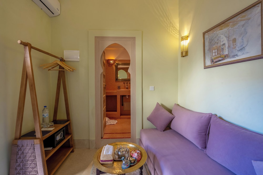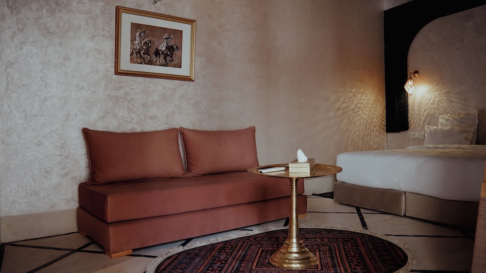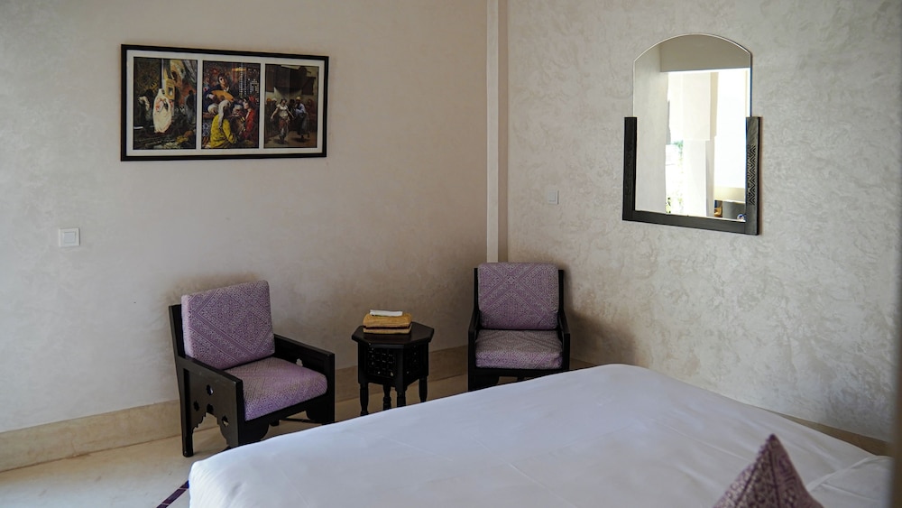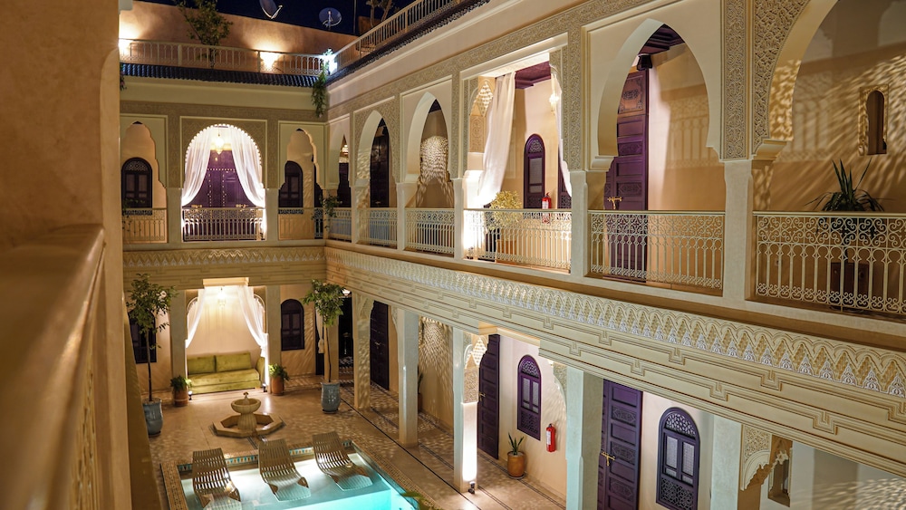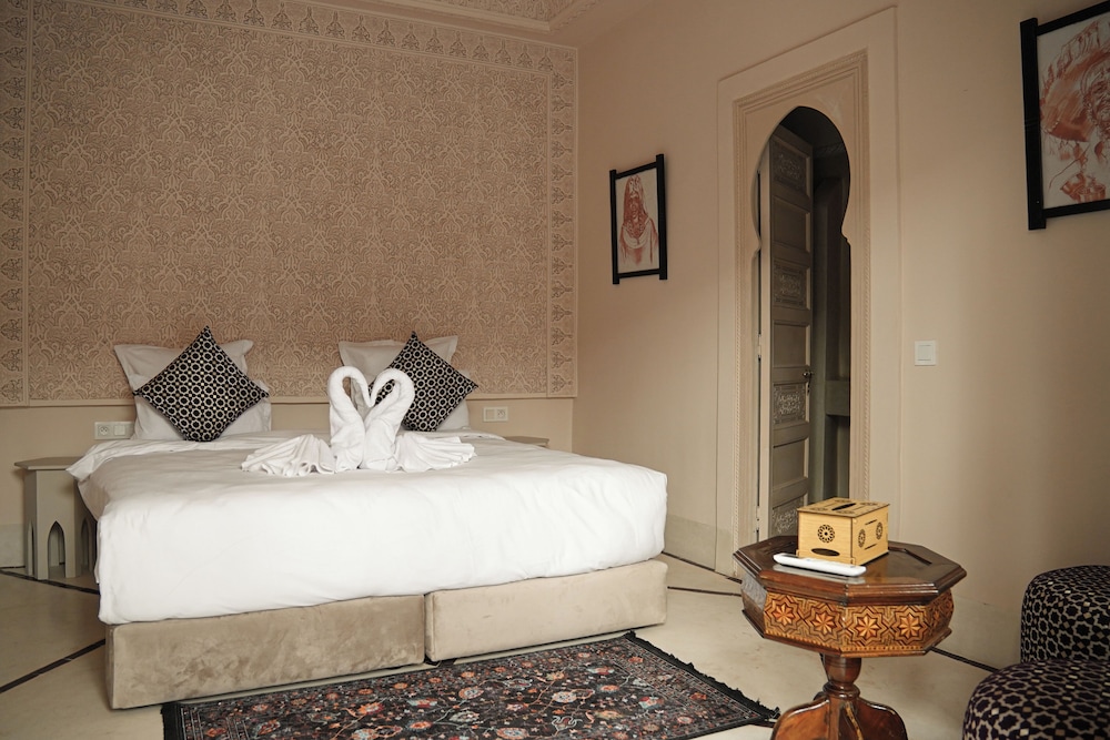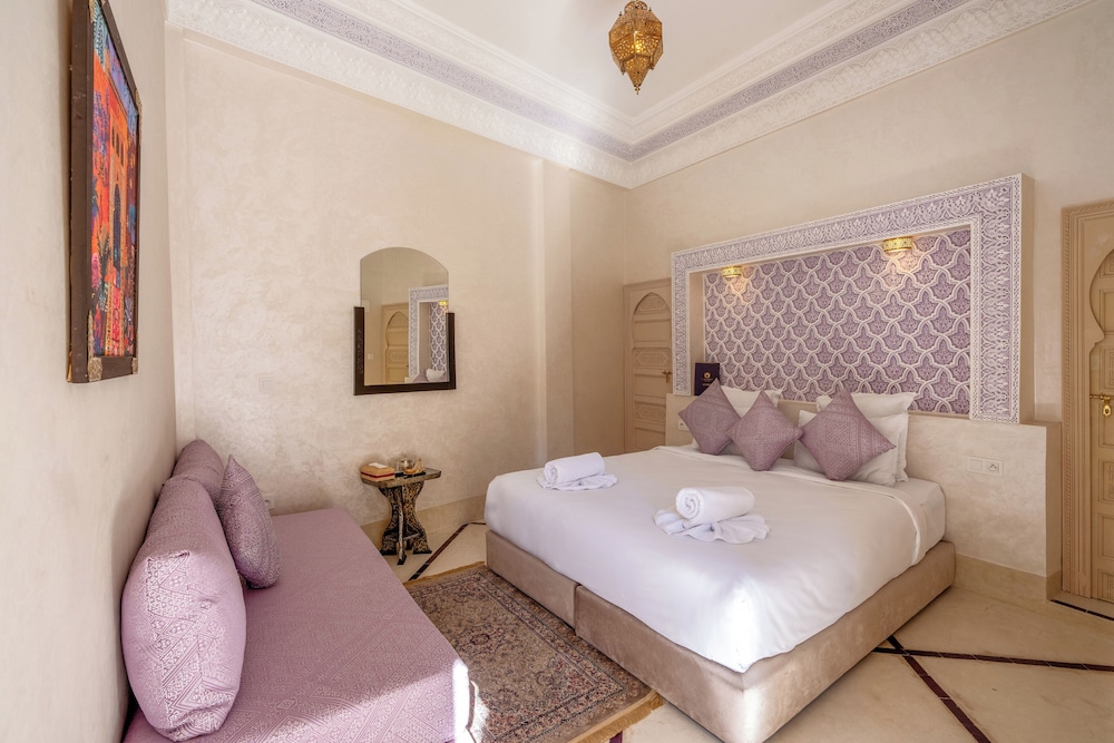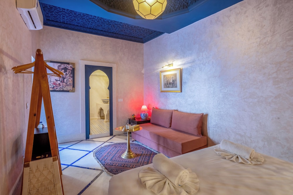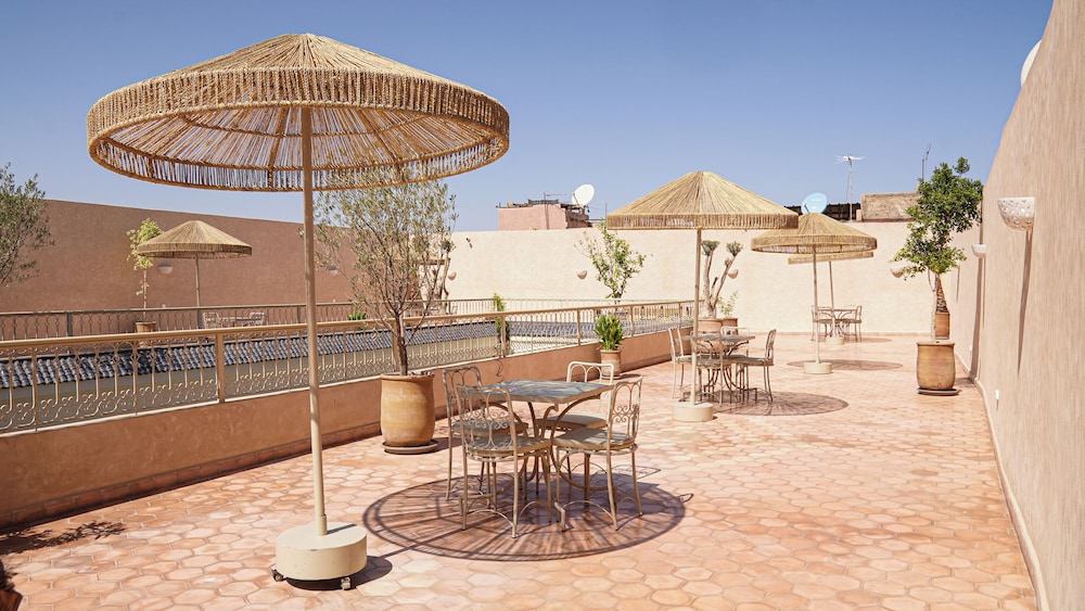 El riad ofrece vistas a la piscina, solárium y recepción 24 horas. Todos los alojamientos disponen de baño privado, secador de pelo y ropa de cama. Se sirve un desayuno continental, vegetariano o vegano. Entre los lugares de interés cercanos al riad se incluyen el Museo Boucharouite, el Palacio de la Bahía y Le Jardin Secret. El aeropuerto de Marrakech-Menara está a 7 km.