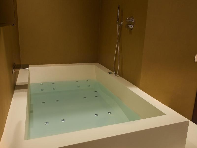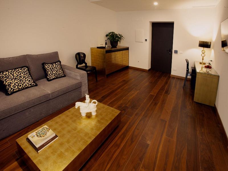 Magnífica habitacion-apartamento con unos 100 m2 amplio salon y habitacion baño complrto y ducha así como una sauna . Muy buen desayuno . Magnífico trato del personal . No tiene aparcamiento propio...