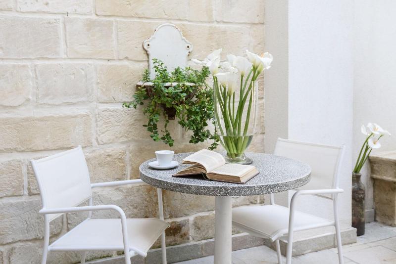 Palazzo dei Dondoli: Habitaciones y apartamentos de lujo. Imposible no enamorarse de los olores, colores y belleza del patio: detalles elegantes y refinados lo convierten en un refugio encantado del estrs de la vida cotidiana. Los huspedes del Palazzo dei Dondoli tienen a su disposicin un eficiente y puntual servicio de traslado desde y hacia el aeropuerto y las estaciones de tren de Lecce, Brindisi y Baricio (es necesario reservar al menos 3 das antes de la llegada)