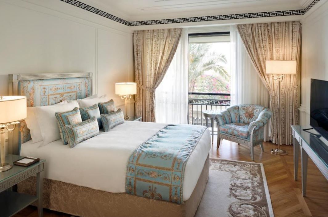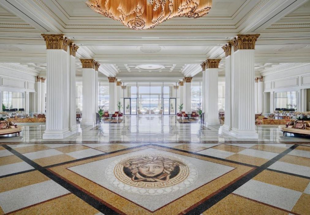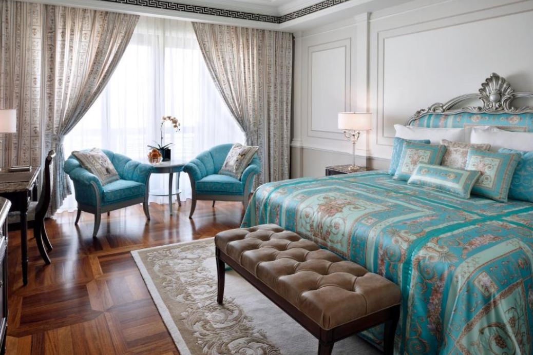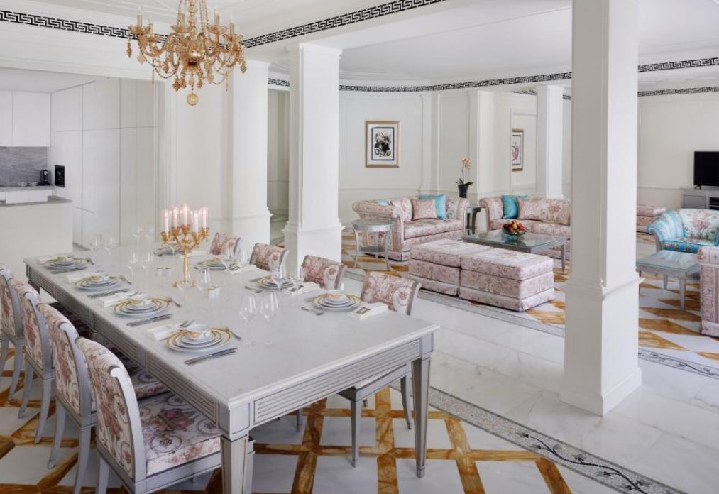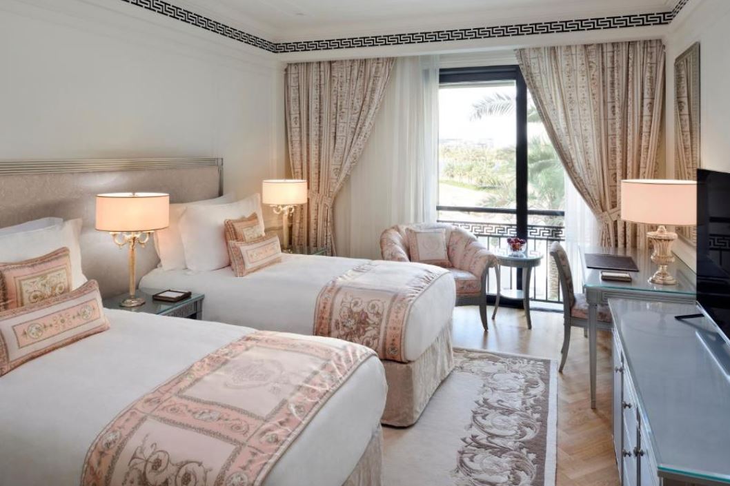 El establecimiento Palazzo Versace Dubai recuerda el estilo de los palacios italianos del siglo XVI y cuenta con una entrada de techo alto, jardines paisajistas y muebles italianos de calidad. El establecimiento Palazzo Versace Dubai está situado en la zona cultural, a menos de 15 minutos del aeropuerto internacional de Dubái y a 8 minutos del Burj Khalifa y el centro de Dubái, a orillas del histórico Dubai Creek. El Palazzo Versace Hotel de Dubái dispone de 215 habitaciones y suites y 169 alojamientos con muebles y tejidos únicos, diseñados a medida por la Casa Versace exclusivamente para el hotel. Los 8 restaurantes y bares del establecimiento tienen una terraza al aire libre que recuerda a los Palazzos, donde el patio interior era una zona informal para reunirse, comer y disfrutar del buen tiempo. Las 3 piscinas al aire libre del establecimiento están decoradas con mosaicos y rodeadas de palmeras y flores. Este hotel de lujo también ofrece preciosos jardines paisajistas y vistas directas a Dubai Creek y al horizonte, y es un lugar ideal para bodas y eventos sociales en Dubái.