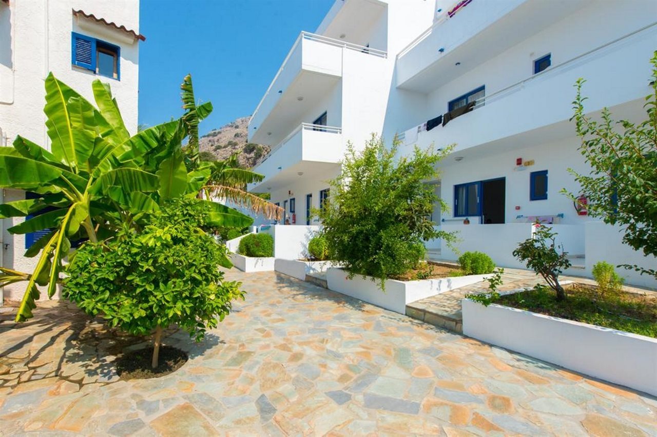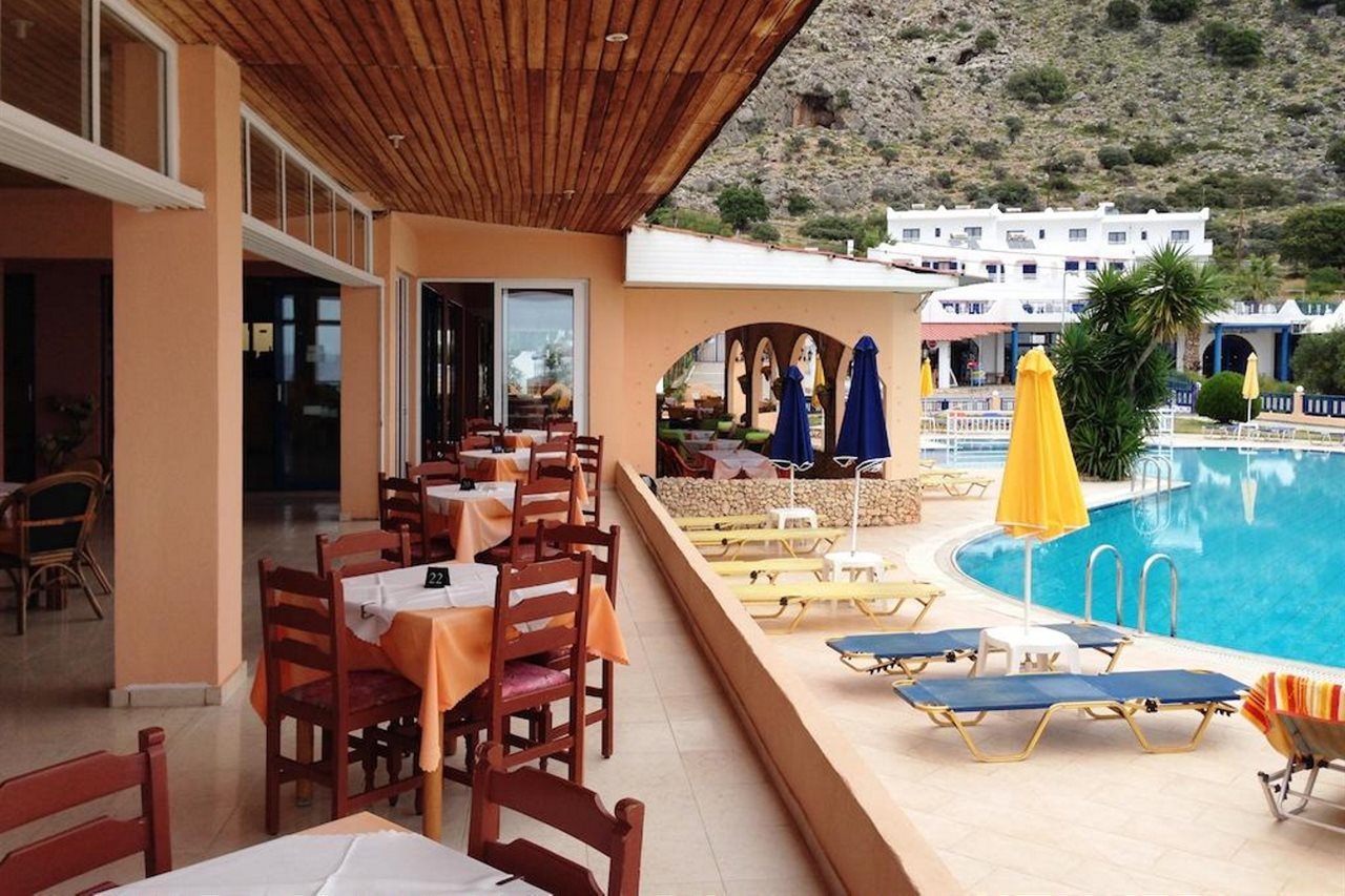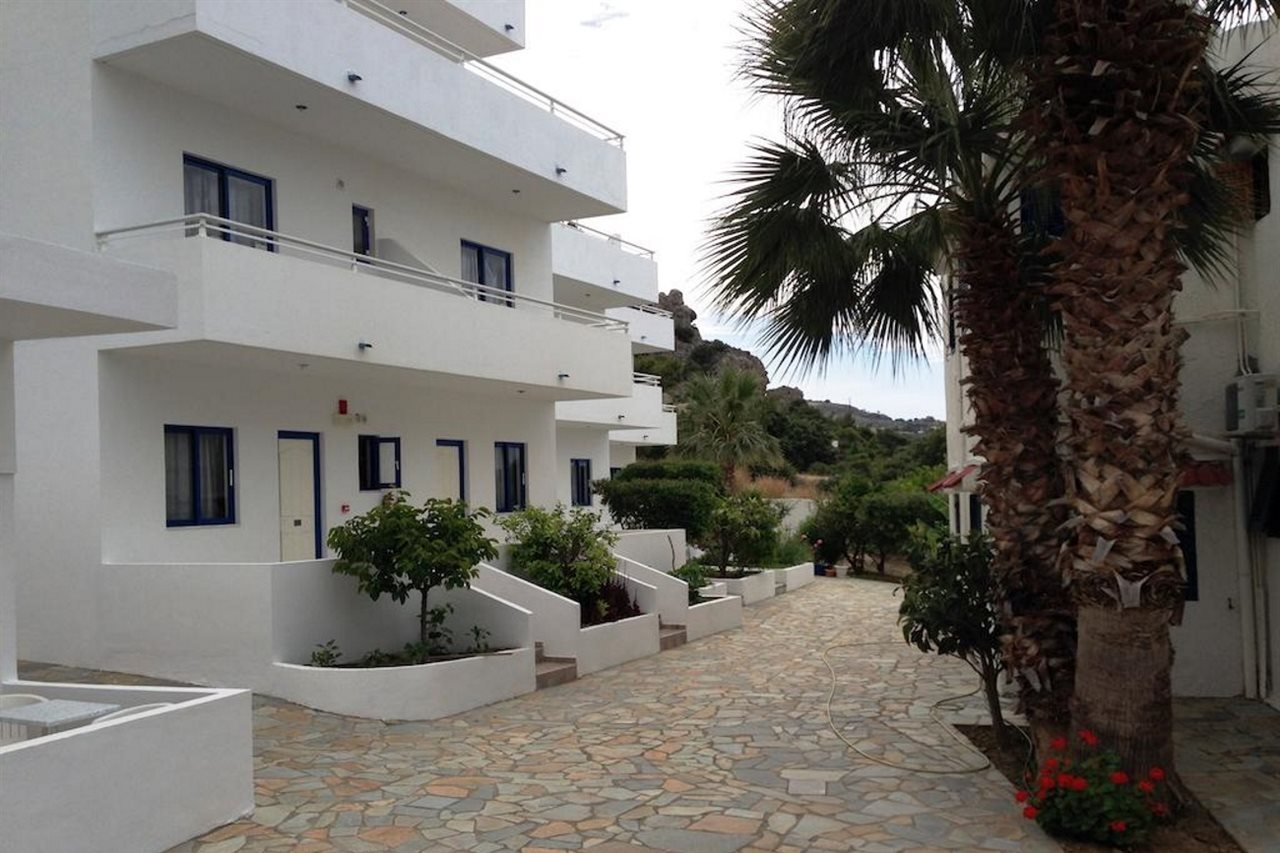 Situado en el centro turístico de Pefkos, aproximadamente 50m de la playa, 4 km del pueblo de Lindos y a 48 km de la ciudad de Rodas. El campo de golf de Afandou está a 30 km y la plaza principal de Pefkos a 700 m. Entre las instalaciones del hotel se encuentran la recepción, caja fuerte de seguridad (en la recepción y con cargo extra), restaurante, bar, piscina con parte para niños, conexión a internet (de pago), terraza exterior con hamacas y sombrillas (a disposición) y parking. Las habitaciones están equipadas con cuarto de baño privados (ducha/WC), aire acondicionado (con cargo extra), nevera, cocina pequeña, balcón o terraza.Nota: El aire acondicionado está en funcionamiento desde Junio hasta Septiembre con cargo adicional.Dirección: 85107 Pefkos - Lindos, Rodas, Grecia.