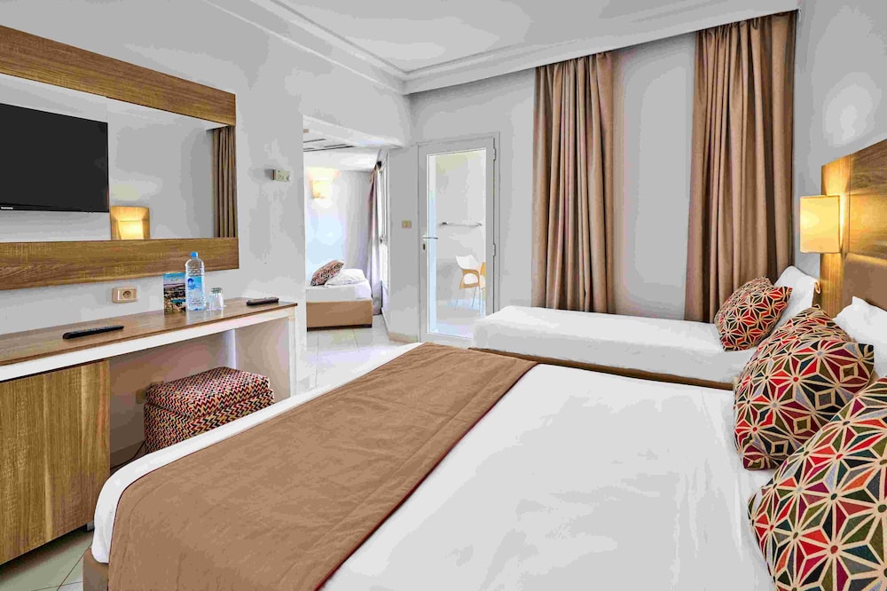 Palm Beach Skanes ofrece un restaurante, bar, piscina, piscina para niños, piscina interior, aeróbicos, tenis de mesa, billar, dardos y videojuegos. Para los niños hay un mini club y un parque infantil.Todas las habitaciones están equipadas con aire acondicionado, TV, teléfono, seguro (carga adicional) y balcón o terraza.En caso de elegir la opción de todo incluido:El concepto todo incluido incluye todas las comidas (desayuno, almuerzo, cena y bocadillos) y bebidas a la hora de comer, como refrescos, cerveza, vino, agua y bebidas alcohólicas, todas las marcas locales.Las bebidas se sirven desde la mañana hasta tarde en la tarde (aproximadamente hasta 22.-24.00 horas).Los horarios de apertura varían entre los diferentes hoteles.En ciertos hoteles también se incluye el programa de actividades.Dirección: Zone Touristique Dkhila Skanes, 5010 Monastir, Túnez