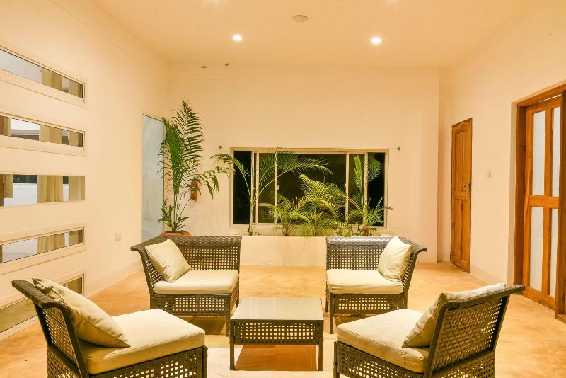 Ubicado en Kidoti, Palm Residence by Amazing Zanzibar se encuentra en una zona rural, a 15 minutos en coche de Nungwi Beach y Kendwa Beach. Este alojamiento de 4, 5 estrellas está a 15 km de Mnemba Island y a 27, 7 km de Mapenzi Beach. Aprovecha las opciones de ocio, como una piscina al aire libre, o disfruta de las vistas desde la terraza y el jardín. Entre los servicios adicionales de este alojamiento se incluyen wifi gratis, servicio de conserjería y zona para barbacoa. Llegar a la playa es facilísimo con el servicio de transporte a la playa (de pago). Tendrás a tu disposición servicios de tintorería/lavandería, un servicio de recepción las 24 horas y atención multilingüe. Se ofrece servicio de transporte al aeropuerto (ida y vuelta) de pago (disponible las 24 horas), así como aparcamiento sin asistencia gratuito. Si tienes hambre, puedes comer o cenar en Dining area, un restaurante especializado en cocina local e internacional. También puedes quedarte en tu habitación y disfrutar del servicio de habitaciones con horario limitado. Pon la guinda en el pastel a tu día con una bebida en el bar o lounge. Se sirve un desayuno bufé gratuito todos los días de 8:00 a 10:00. Siéntete como en casa en una de las 8 habitaciones con aire acondicionado y cocina con frigorífico y horno. Las televisiones de plasma de 50 pulgadas con canales por satélite proporcionan entretenimiento, mientras que la conexión a Internet wifi gratis te permite estar conectado. El baño privado está provisto de bañera profunda y cabezal de ducha tipo lluvia. Entre las comodidades, se incluyen caja fuerte y escritorio, además de un servicio de limpieza disponible todos los días.
