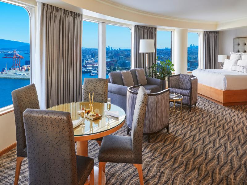 El fantástico y lujoso Pan Pacific Vancouver Hotel goza de una ubicación incomparable frente al mar, sobre Canada Place con su terminal de cruceros y con vistas al puerto de Vancouver y las montañas circundantes. Cuenta con una terraza en la azotea con piscina de agua salada y jacuzzi. El Vancouver Convention Centre se encuentra justo al lado del hotel; las históricas calles de Gastown están a solo unos pasos.