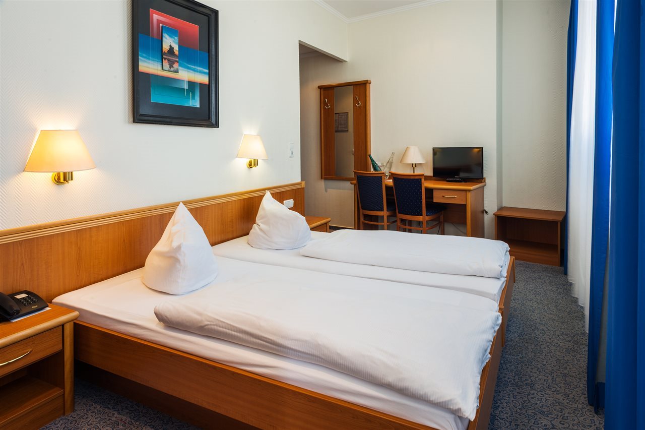 Las instalaciones y servicios del hotel incluyen recepción, ascensor, sala de equipajes, bar, sala de desayunos y salas de reuniones. WiFi en todo el hotel.Todas las habitaciones son para no fumadores y están equipadas con TV, teléfono y acceso a Internet WiFi.Llegada: a partir de las 15.00 horas en adelante; salida: hasta las 11.00 h.Estación de metro (50 m): AdenauerplatzDirección: Lewishamstraße 1, 10629 Berlín, Alemania.