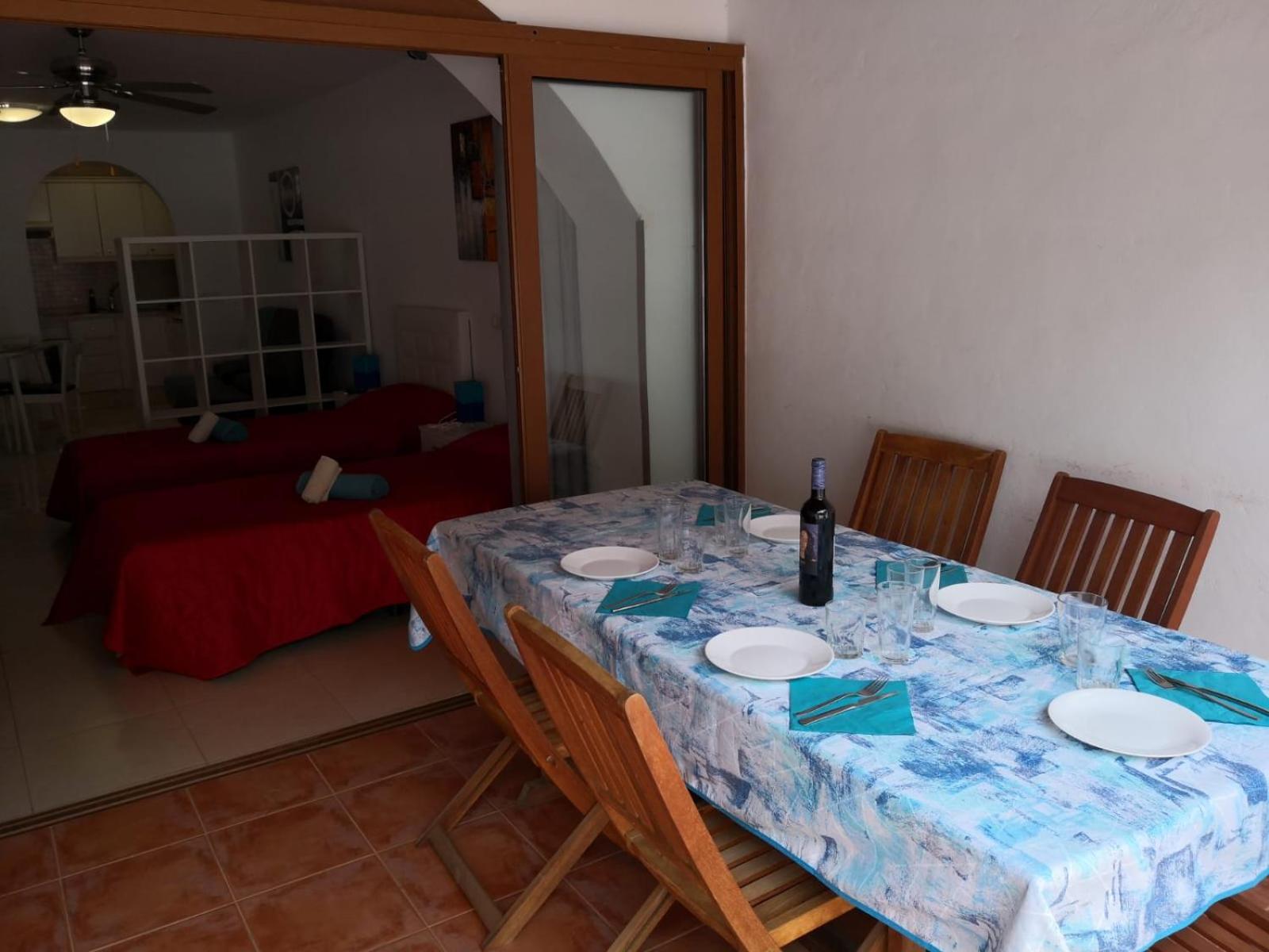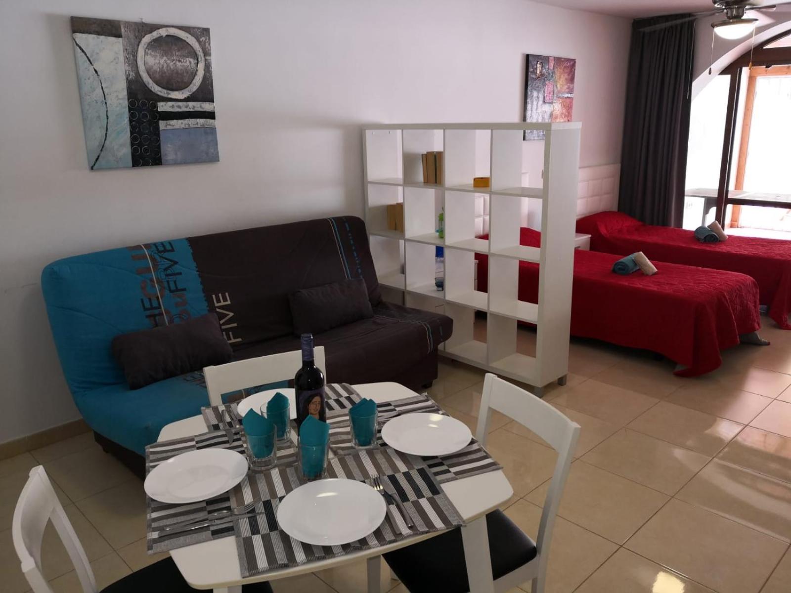 Si decides alojarte en Paraiso Royal de Arona, estarás a menos de diez minutos en coche de Playa de los Cristianos y Estadio Antonio Domínguez Alfonso. Además, este apartotel se encuentra a 1 km de Playa de Troya y a 1,1 km de Las Verónicas. Reserva una de las 119 habitaciones con cocina básica, frigorífico/congelador grande y placa de cocina, y disfruta de una estancia inolvidable. Las habitaciones disponen de balcón. Entre las comodidades, se incluyen caja fuerte y minibar. Tienes una terraza donde sentarte a contemplar el paisaje. Apaga la sed con tu bebida favorita en el bar o lounge. Hay un aparcamiento sin asistencia (de pago) disponible.