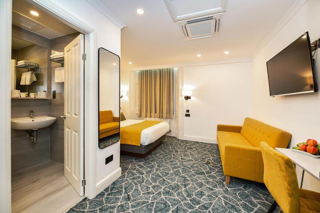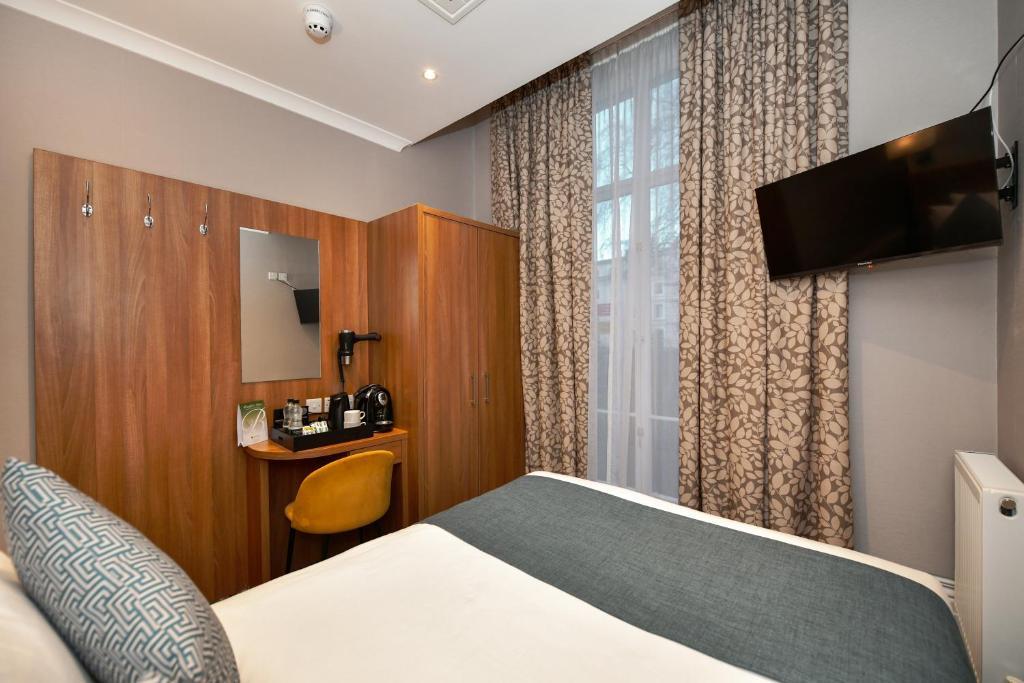 Ubicación - Este sencillo hotel tiene una ubicación céntrica cerca de Hyde Park, Kensington Gardens y Queensway. Hay numerosas tiendas y otras atracciones culturales a las que se puede llegar fácilmente a pie o en transporte público. Bayswater es la estación de metro más cercana y está a solo 350 m del hotel.. Instalaciones - El hotel se construyó en el año 1850. El establecimiento ofrece a los viajeros un total de 139 habitaciones. Hay un vestíbulo y servicios de recepción a disposición de los huéspedes. Las plantas son fácilmente accesibles en ascensor o bien por las escaleras. Las instalaciones incluyen una caja fuerte, un restaurante, una sala de desayunos, un bar, servicio de habitaciones, una sala de conferencias y un centro de negocios. Los huéspedes pueden conectarse a Internet en las zonas públicas mediante Wi-Fi. Aquellos que viajen con vehículo propio pueden dejarlo en el aparcamiento del alojamiento.. Habitaciones - En las habitaciones hay aire acondicionado, calefacción central y un cuarto de baño. También se ofrece una caja fuerte por un cargo adicional. Las habitaciones también incluyen una cafetera/tetera. Hay un set de plancha para mayor comodidad de los huéspedes. Pequeños extras se encargan de proporcionar una estancia agradable, como conexión a Internet, teléfono, televisor, radio y Wi-Fi (por un cargo extra). Los cuartos de baño están provistos de una ducha y una bañera. Las comodidades incluyen un secador de pelo. El hotel ofrece habitaciónes familiares y habitaciones de no fumadores.. Deporte y ocio - Hay un casino para proporcionar diversión y entretenimiento. Comidas - Los huéspedes pueden escoger entre las siguientes opciones gastronómicas: desayuno o cena.. Tarjetas de crédito - Como forma de pago se aceptan las tarjetas de crédito habituales como, por ejemplo, American Express, Visa, Diners Club, JCB y MasterCard..