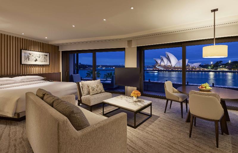 La mayoría de las habitaciones ofrecen vistas de la ciudad de Sídney y su deslumbrante puerto, y cuentan con una zona de trabajo con silla ergonómica, conexión a Internet de alta velocidad y un agradable edredón, así como almohadas de plumas. Cada una de ellas cuenta con cuarto de baño en mármol con cabina de ducha separada, bañera y secador de pelo. Otras comodidades incluidas son cama extra grande, teléfono de línea directa, TV vía satélite/por cable, radio, conexión a Internet, caja fuerte, minibar, cafetera/tetera, set de plancha y balcón o terraza. Los huéspedes también disfrutarán de la comodidad de contar con aire acondicionado y calefacción regulables.
