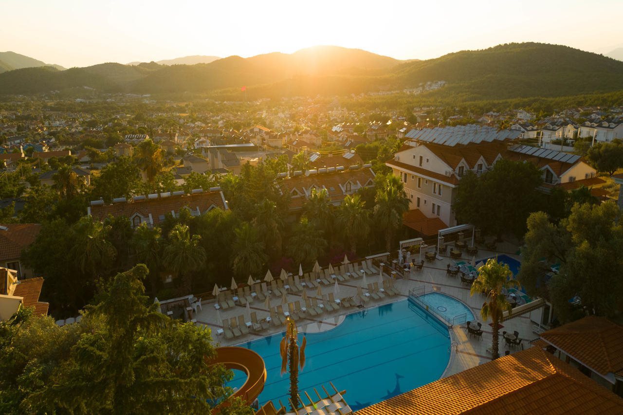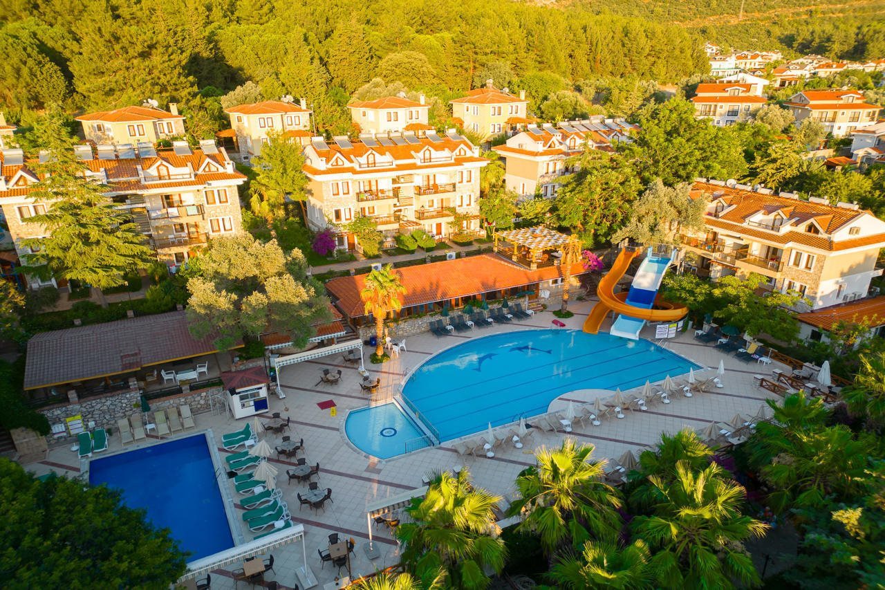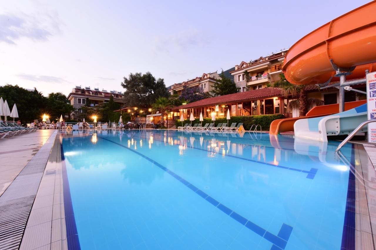Las instalaciones y servicios incluyen recepción 24 horas, parking, jardín, tiendas, cafetería, restaurantes, bares, aire acondicionado, sala de juegos, mini mercado, vestíbulo, servicio de habitaciones, servicio de lavandería (cargo extra), piscinas, y servicio médico (cargo extra).Deporte/Entretenimiento Aeróbic, baloncesto, billar, tenis, ping-pong, minigolf y parque infantil.Baño turco (cargo extra), mascarillas de belleza (cargo extra), masajes (cargo extra), sauna (cargo extra), gimnasio y jacuzzi (cargo extra).Características de la habitación: Caja fuerte (cargo extra), Acceso a Internet, TV vía satélite/cable, Minibar, Salón, Secador de pelo, Limpieza y Sillas.En caso de elegir la opción de todo incluido:El concepto Todo Incluido incluye todas las comidas (desayuno, almuerzo, cena y snacks) y bebidas durante las comidas como refrescos, cerveza, vino, agua y bebidas alcohólicas, todas de marcas locales.Las bebidas se sirven desde la mañana hasta última hora de la noche (aproximadamente de 22:00 a 24:00 horas).Los horarios de apertura varían entre los diferentes hoteles.En determinados hoteles también está incluido el programa de actividades.Dirección Ovacik area Oludeniz Resort Oludeniz Fethiye 48300 Turquía