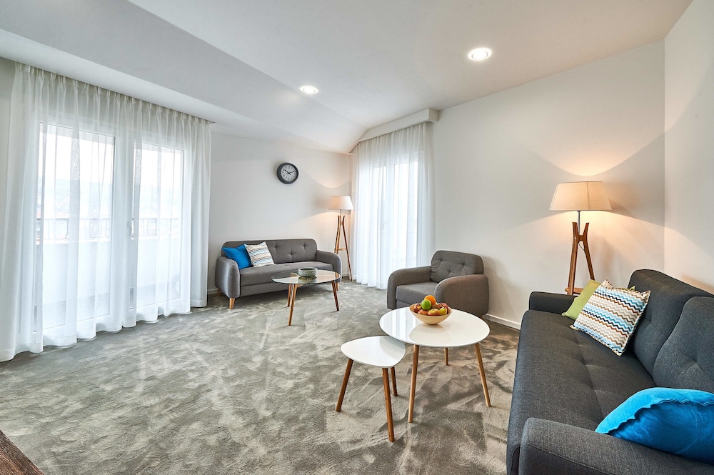 Las instalaciones y servicios incluyen acceso a Internet inalámbrico, aparcamiento, gimnasio, instalaciones de spa (cargo extra), sala de conferencias, restaurante, bar, piscina, ascensor, servicio de habitaciones (cargo extra) y recepción las 24 horas.Las habitaciones cuentan con aire acondicionado, acceso a Internet inalámbrico, caja de seguridad, televisión, balcón o terraza, cocineta, nevera, minibar (cargo extra), cafetera o tetera, secador de pelo, teléfono y cuarto de baño.Dirección: Vlada Cetkovica 70, Podgorica, Montenegro.