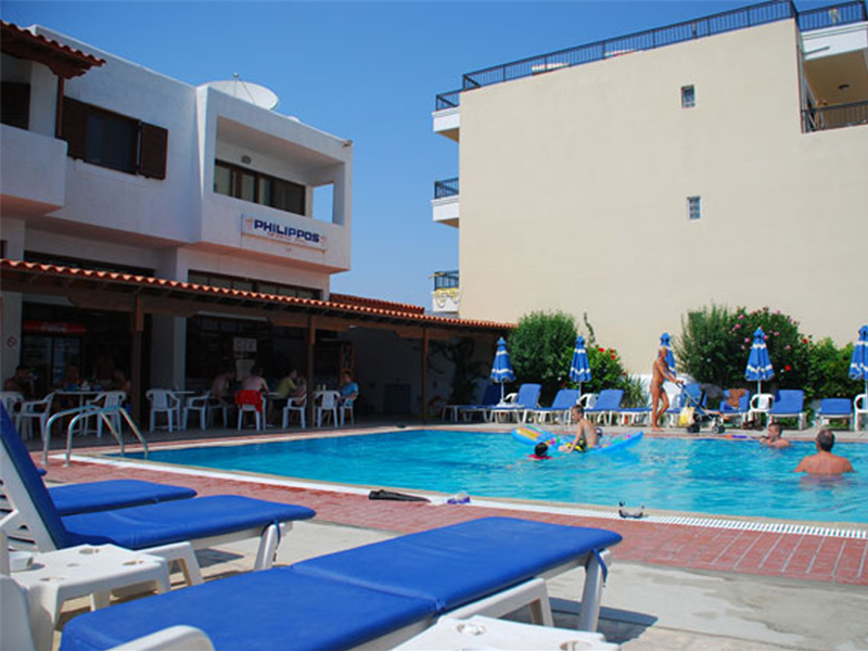 Philippos Studios & Apartments dispone de una situación ideal en el pueblo de pescadores de kardamena, a sólo 50 m. de la playa y a 5 minutos caminando de todos los bares y restaurantes.El complejo dispone de zona de recepción y piscina exterior rodeada por una terraza solárium llena de sombrillas y tumbonas, así como un bar de piscina que sirve bebidas y snacks.Cada estudio y apartamento está equipado con A/C (con cargo adicional), caja de seguridad, teléfono, pequeña cocina equipada con 2 hornillos para cocinar, frigorífico y tetera eléctrica, baño con ducha, secador de pelo y balcón o terraza.La limpieza de los alojamientos se realiza cada día y las toallas y sábanas son cambiadas 2 veces por semana.Dirección: 85302, Kardamena, Kos Island, Greece.